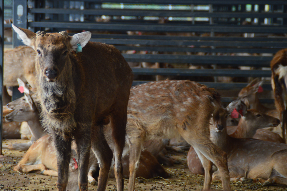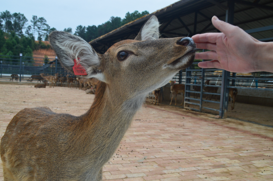 回到岸边,工作人员才告诉我们刚刚还路过了一个鹿岛,上面住着可爱的梅花鹿。为了与这群大自然的精灵们近距离地接触,我们又乘着竹筏前往鹿岛,看着萌萌的小可爱们,仿佛找到了儿时去动物园的兴奋感,大家都争先恐后地给它们喂食,别有一番体验感。