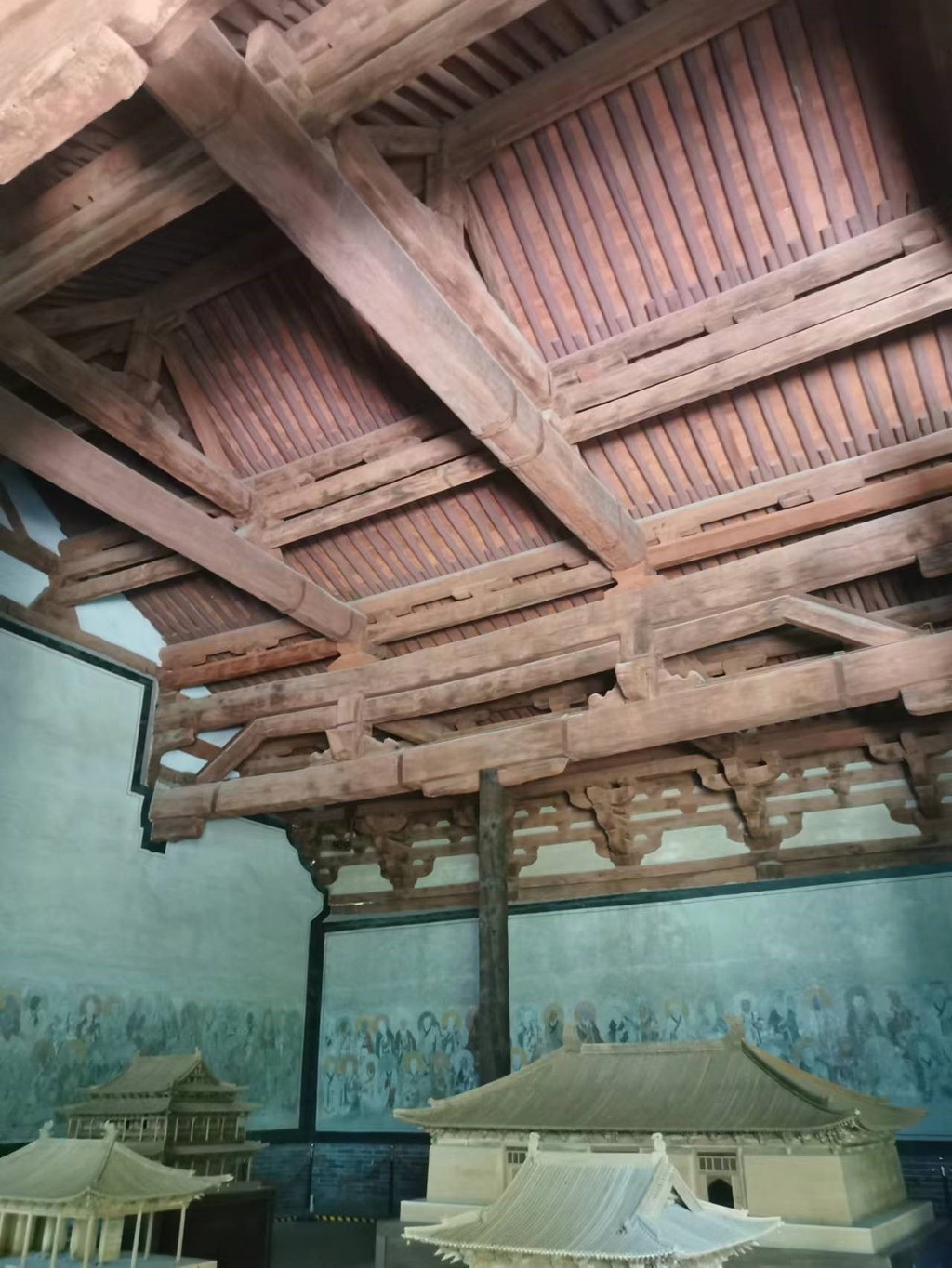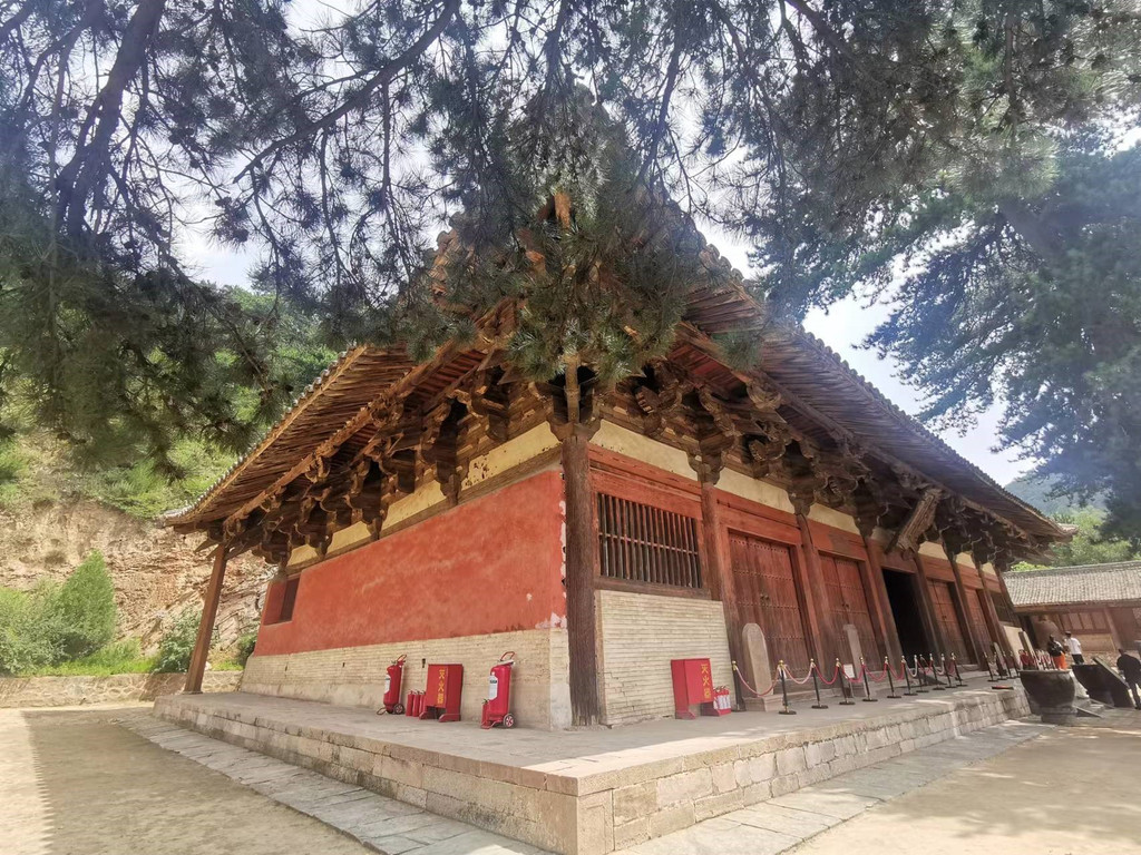 ※佛光寺(超五星推荐!!!):我国仅存的三座唐代木构建筑有两座保存在五台山,其中体量最大也是最早发现的一座便是佛光寺的东大殿。据说1937 年,梁思成、林徽因等人在此发现这座唐代木构之后兴奋不已,想看唐代木构建筑终于不必非去日本不可了。开头那篇文章里有东大殿榫卯结构建筑的照片,但远不止实际看到的那样粗狂和震撼!更可贵的是,殿内佛坛上的塑像也都是唐代原物,还有局部的唐代壁画,原汁原味大唐盛世之风。还有神奇的文殊殿,其梁架采用大跨度八字柁架俗称“减柱造”的建筑工艺,较一般建筑少用八根立柱,可以增加供奉空间,开阔而庄重,佩服古人的智慧。