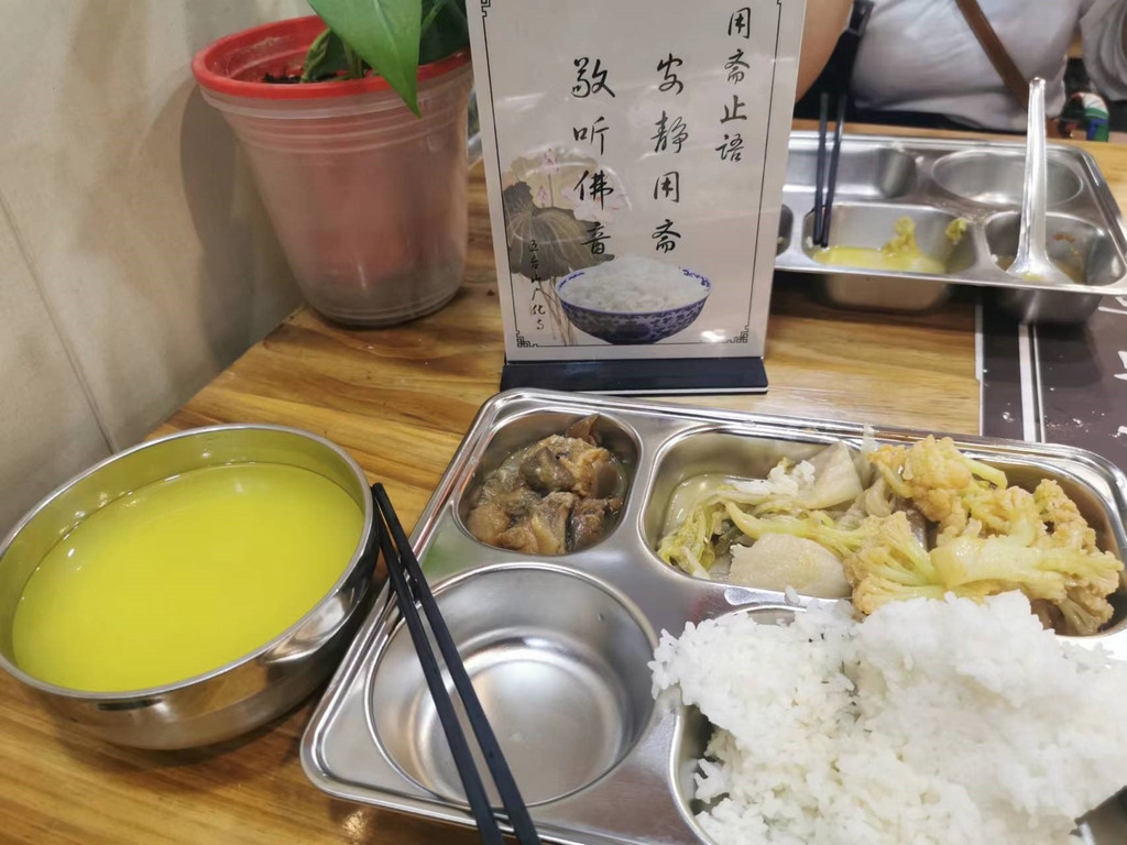 ※广化寺(推荐指数四颗星):已然成为了一处网红打卡圣地,可以穿藏服拍照,可以赏灯夜游(可惜我们去的时候夜景暂时关闭),还可以吃斋饭(两种可选:每人一份的家常素菜米饭或者4-6人一桌的素火锅)。我们拍拍拍完了之后还没到11点但是积福斋门口已经排起了队,心想那就先吃吧,味道还不错,不能浪费,吃完自己刷碗。