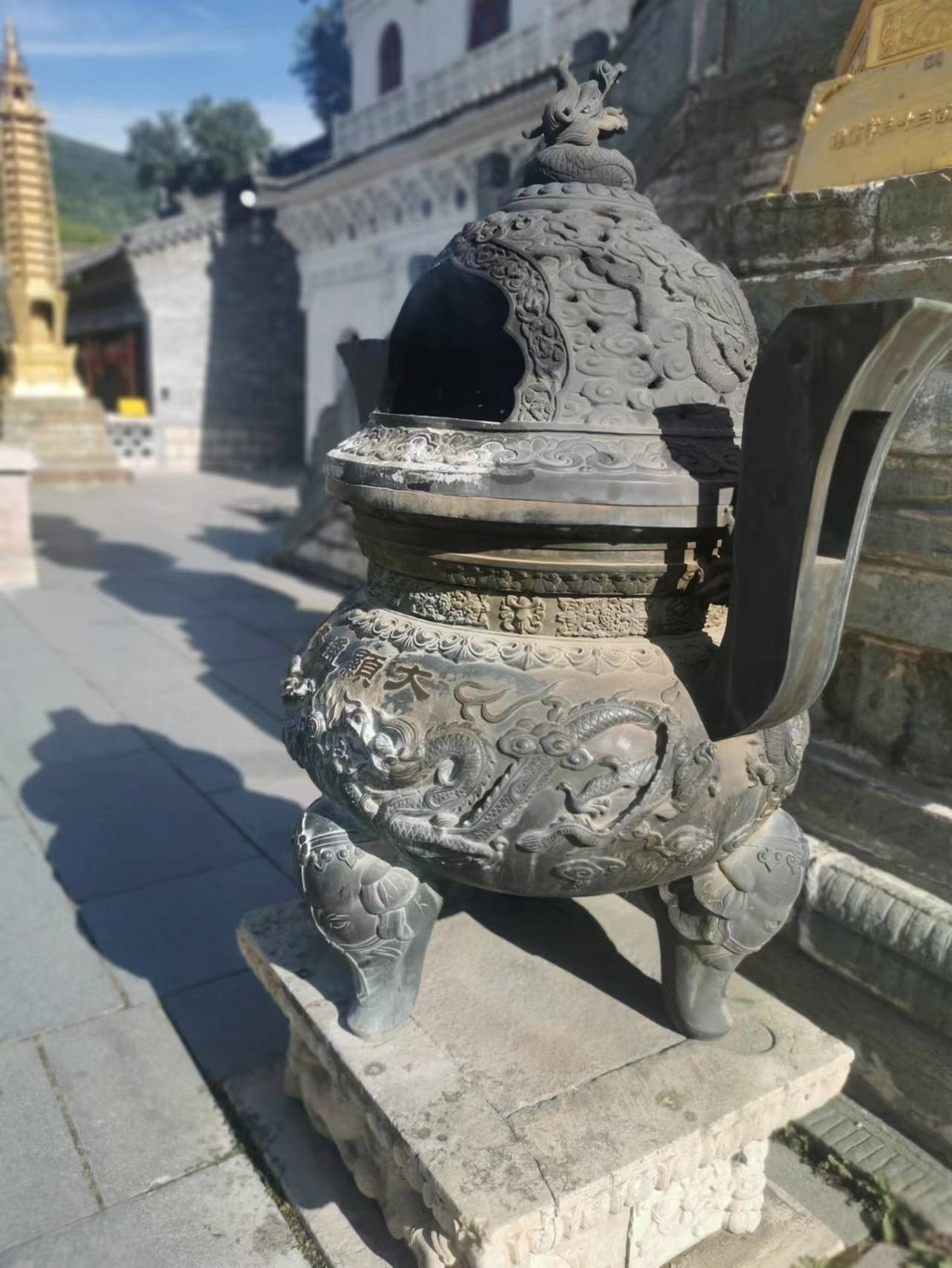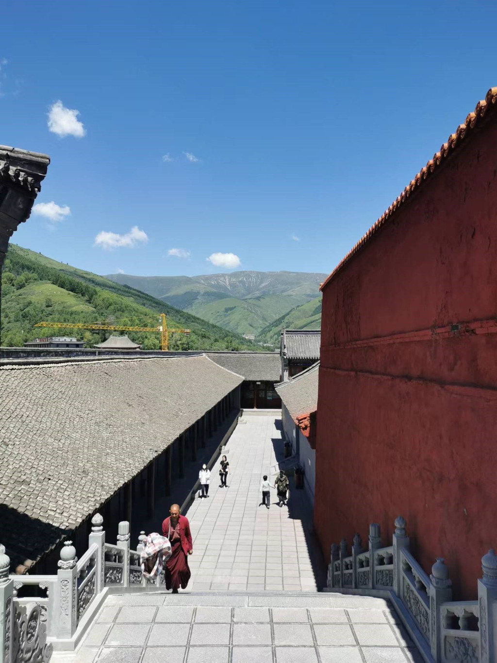 ※菩萨顶(推荐指数三星):五台山最大的黄庙(喇嘛寺),号称小布达拉宫,位于灵鹫峰上,单就这几个名号拉高了我的预期,但是以五台山目前“大工地”的状态,尘土飞扬路标又少,给人感觉在爬一座野山。爬的时候我就在想,以前皇帝们来朝拜时也抄小路吗。。。寺前石阶108级,一说是暗指山西旧属的108个县,人们更相信佛家的说法——把人间的108种烦恼踩在了脚下(黛螺顶是1080级)。可以看看大文殊殿和康熙乾隆帝的御碑,感受一下藏传佛教建筑特色。