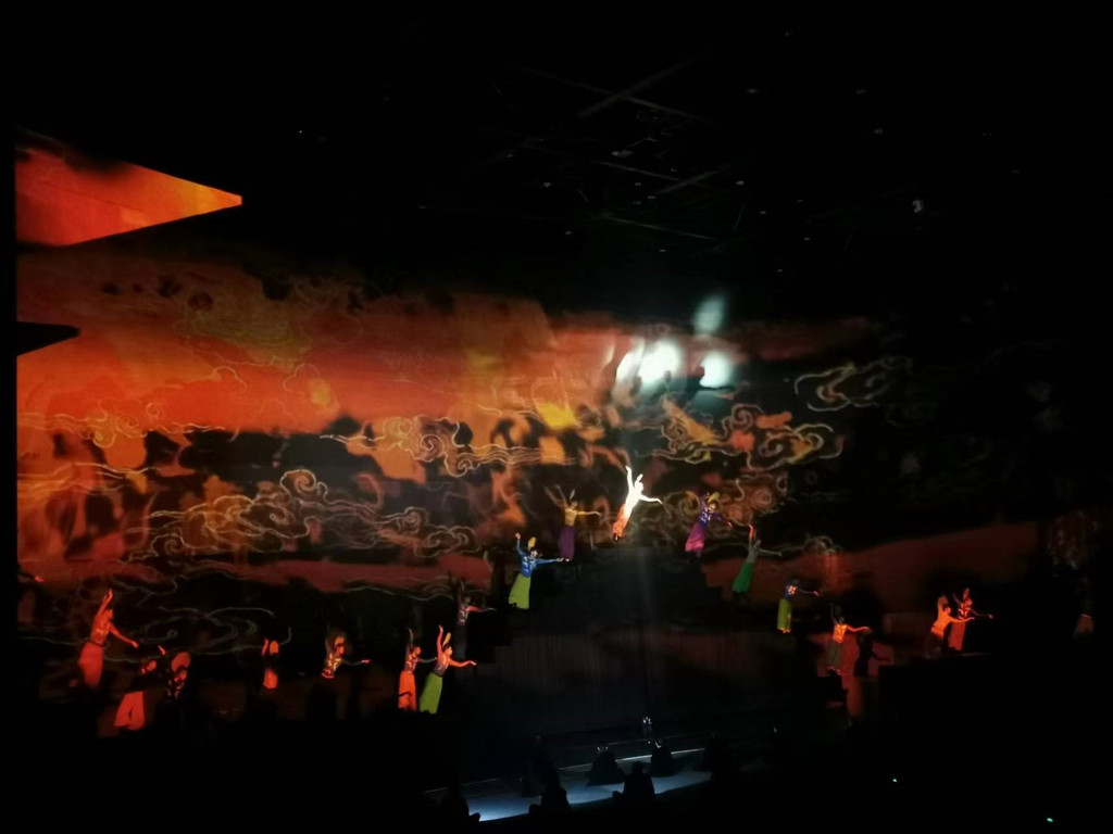 ※《又见五台山》情境演出(推荐指数四星半):看之前我就在想,像张艺谋老爷子的各种“印象”系列是通过山水实景演出让人身处情境之中,那佛教的情境如何构建?佛国是什么样子呢?导演真的下了一番苦心,让不那么了解佛教的普通人也能感受到艺术之美,尝试领悟佛教哲学。往剧场走的通道里演绎受戒过程,带你进入情境;舞台和观众席是圆形且可以旋转的,演出过程通过互动、调动观众各种感官,让人觉得佛教、僧人其实离大家并不遥远;离场通道里此起彼伏的风铃声,由黑暗逐渐走向阳光,醍醐灌顶。