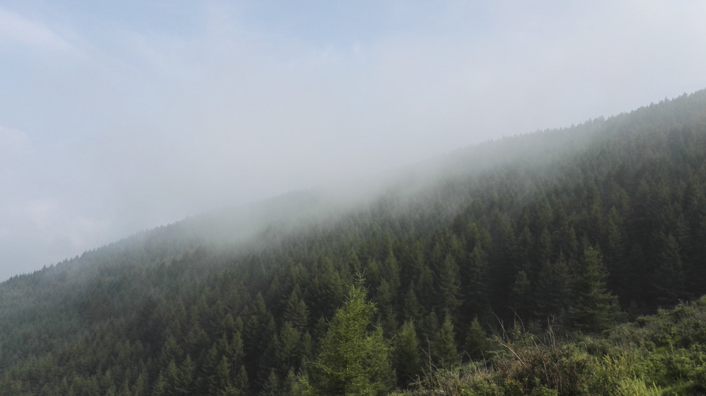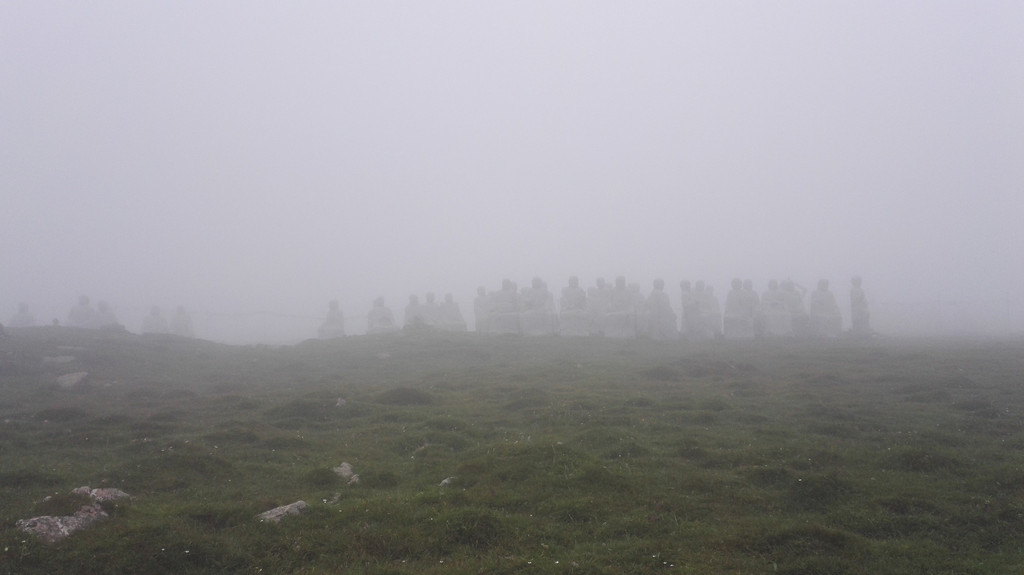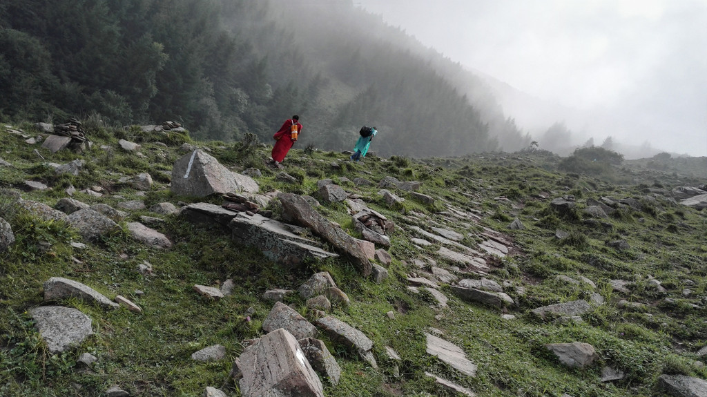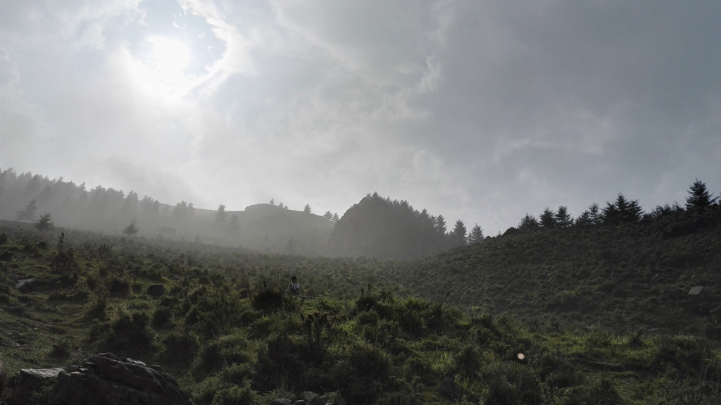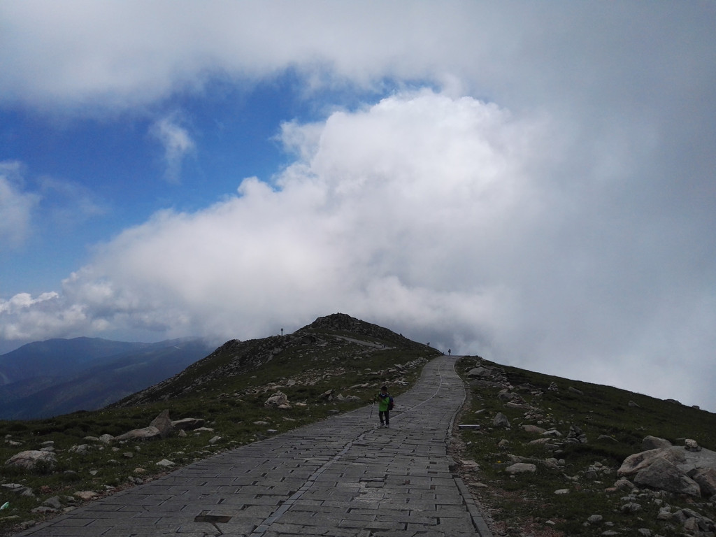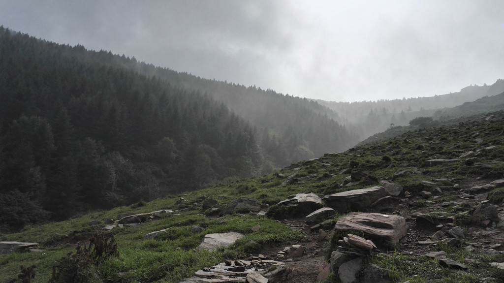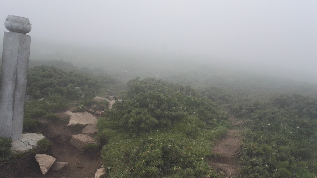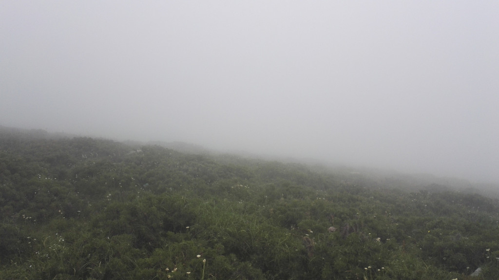 离开西台要接着爬过两座山才能到达北台,我们一路前进,大雾和小雨相伴。
