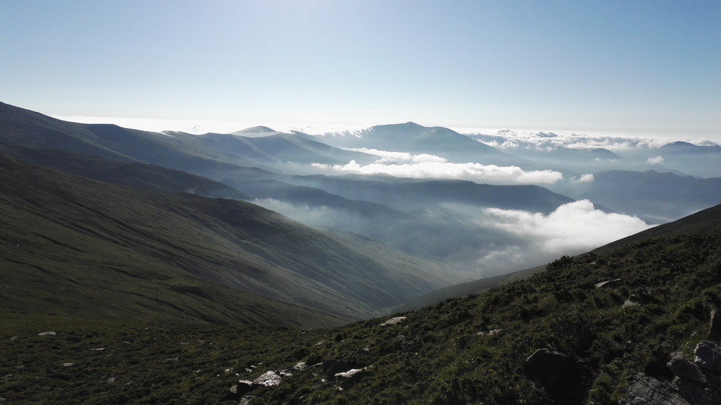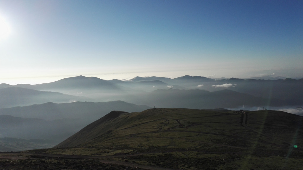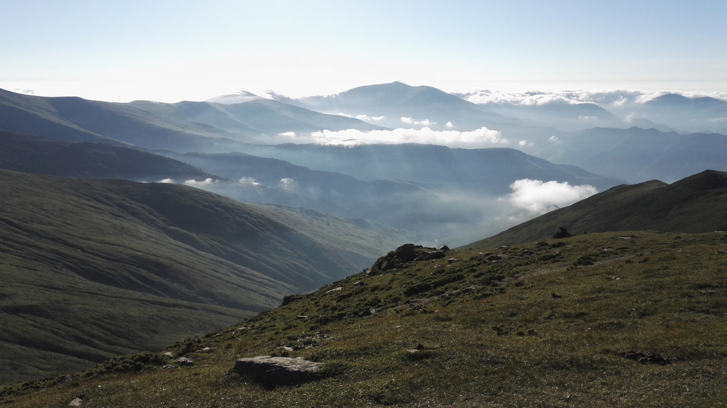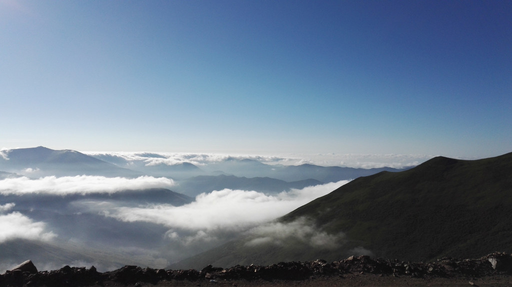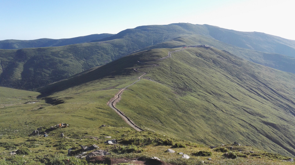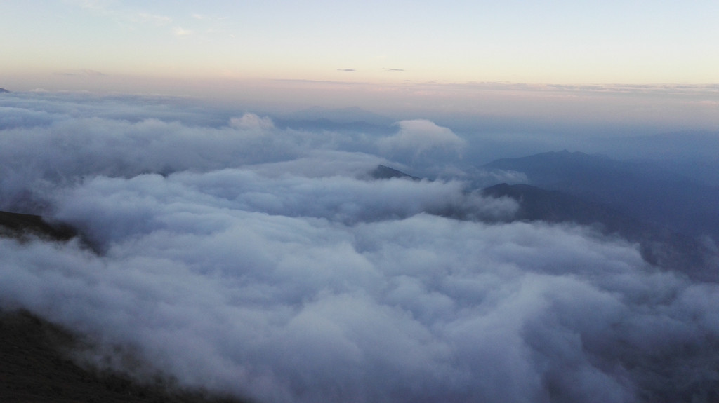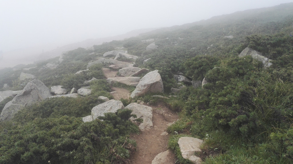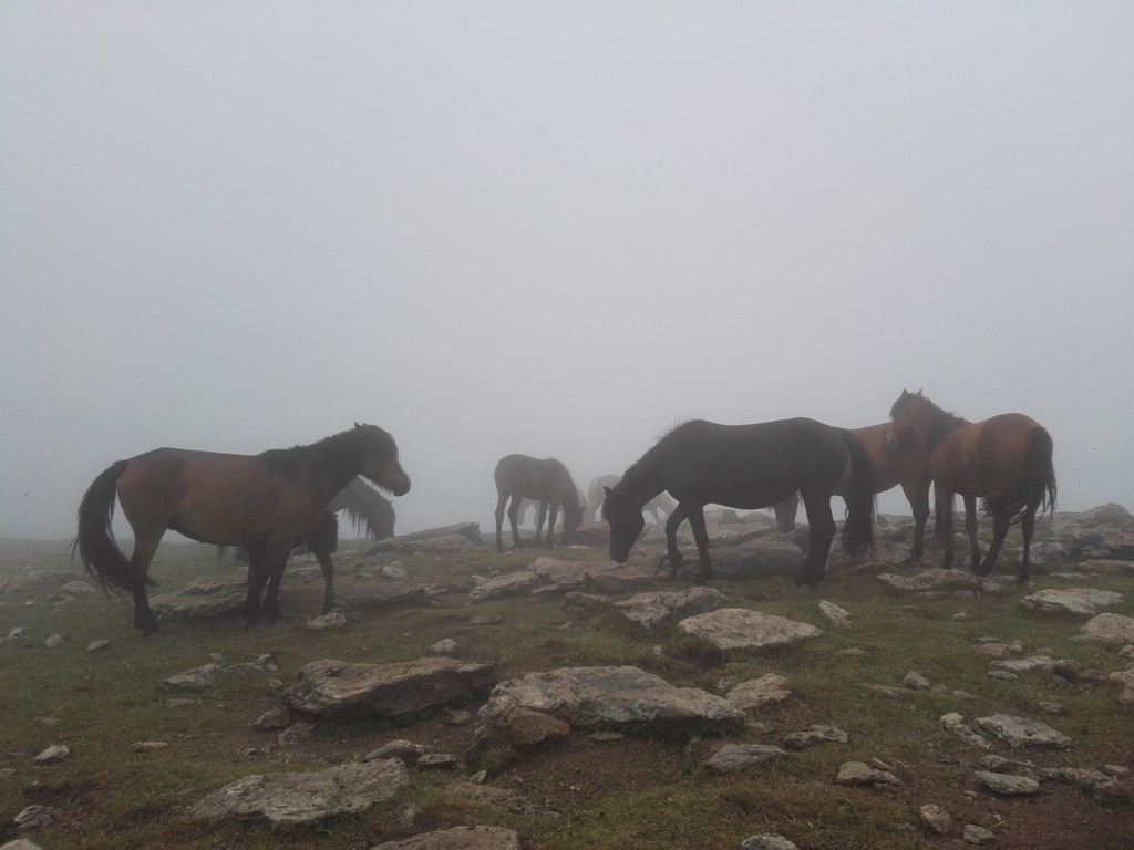 离开西台要接着爬过两座山才能到达北台,我们一路前进,大雾和小雨相伴。