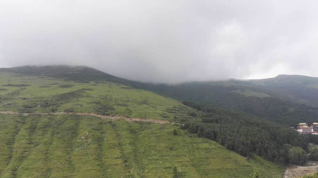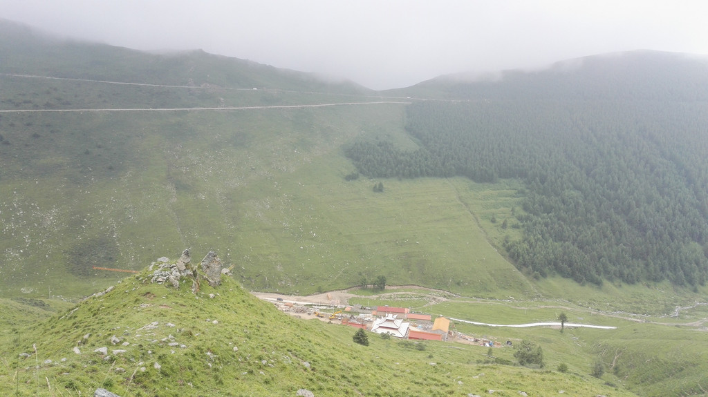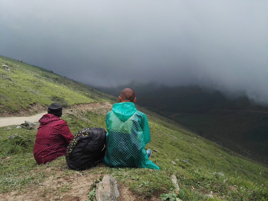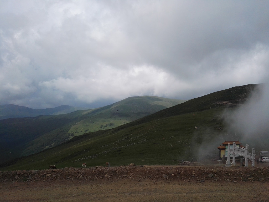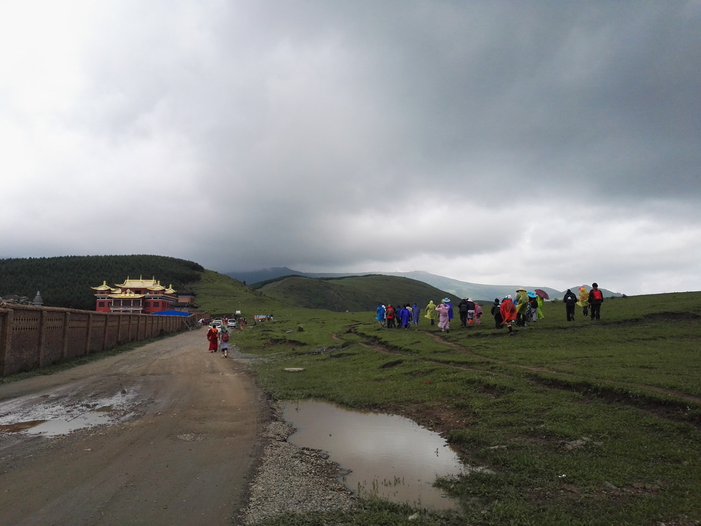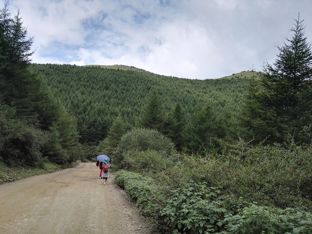 午饭后我们出发了,同行的还有阿姨的同乡,一位来自塔尔寺的师傅,由于阿姨三天后还要再一次朝山,我们决定佛母洞的路线改打车到山下坐揽车上山,这样可以省去两个多小时的时间还能保留些体力。从佛母洞开始,我们就要开始步行了,天空下起了小雨,我们沿着公路上山,走了一段公路之后开始爬山。