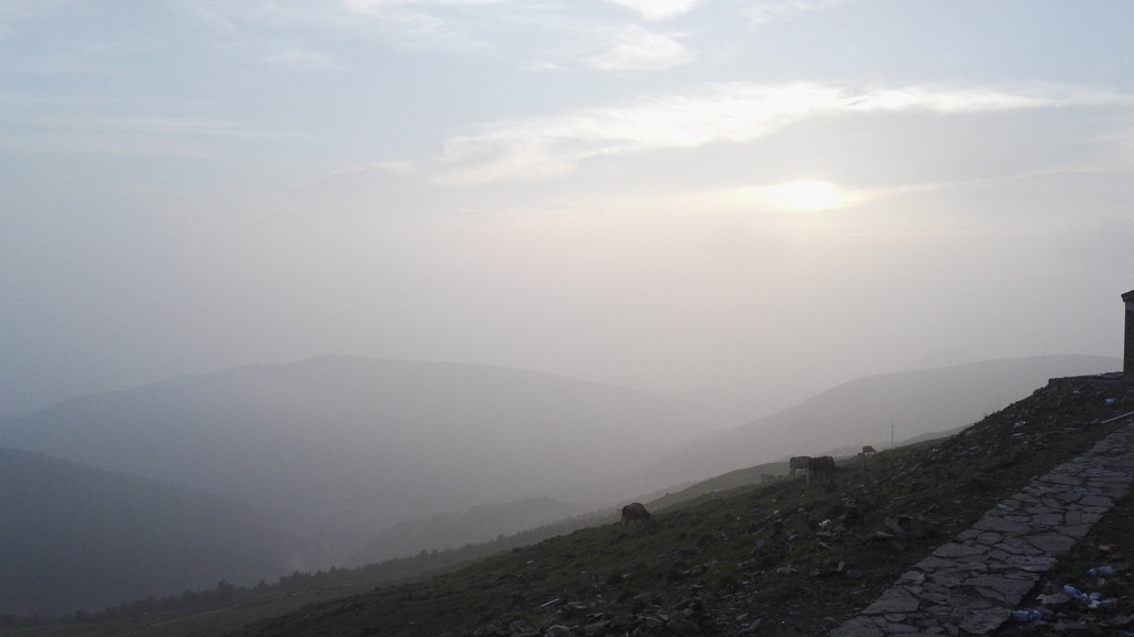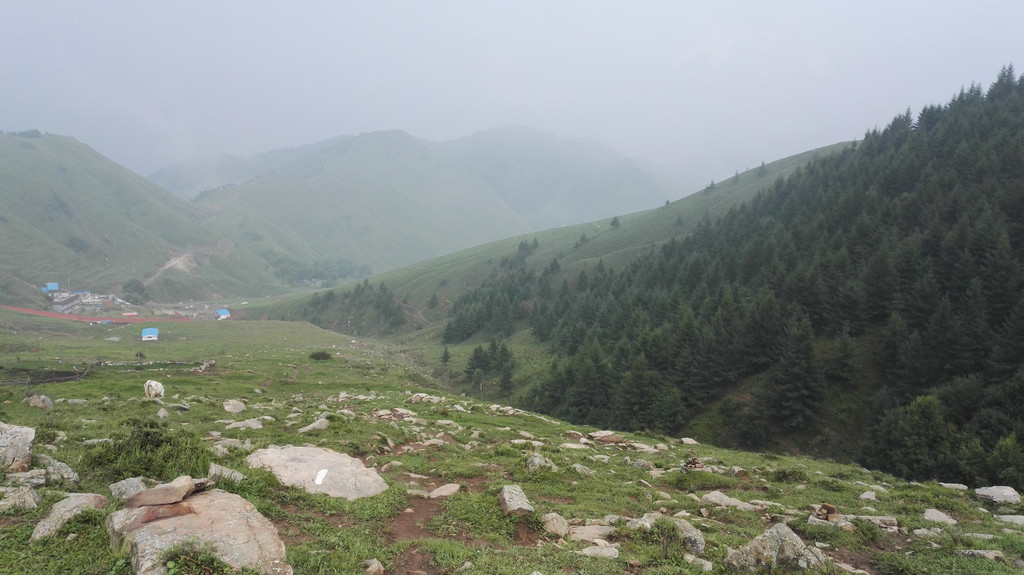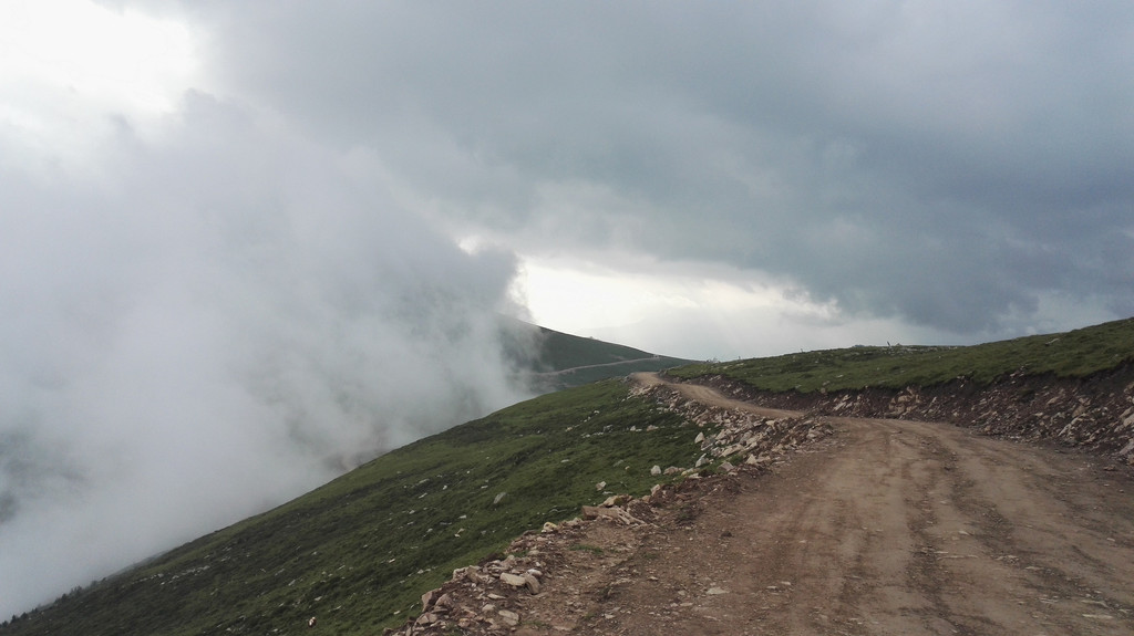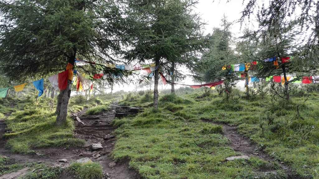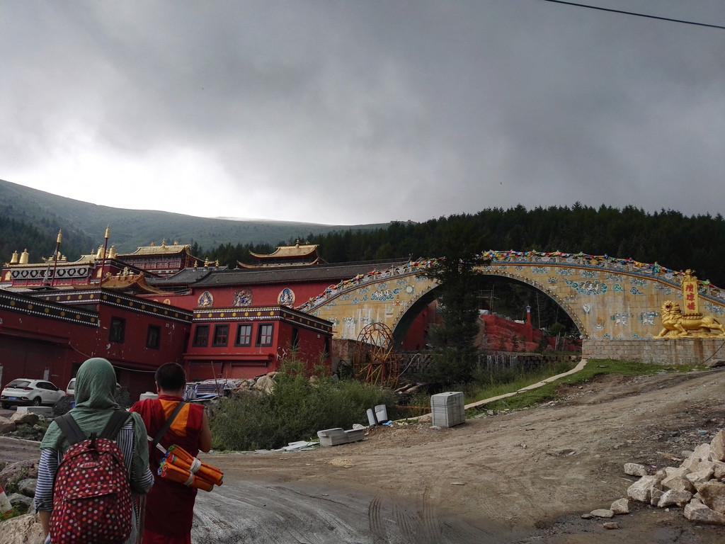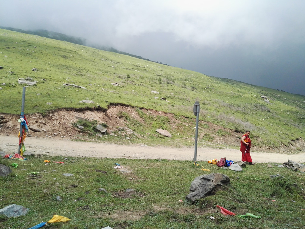 午饭后我们出发了,同行的还有阿姨的同乡,一位来自塔尔寺的师傅,由于阿姨三天后还要再一次朝山,我们决定佛母洞的路线改打车到山下坐揽车上山,这样可以省去两个多小时的时间还能保留些体力。从佛母洞开始,我们就要开始步行了,天空下起了小雨,我们沿着公路上山,走了一段公路之后开始爬山。