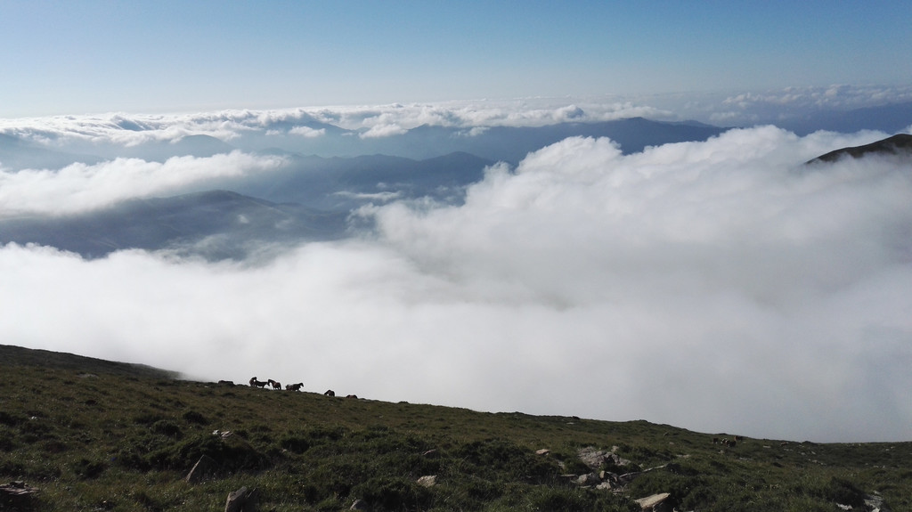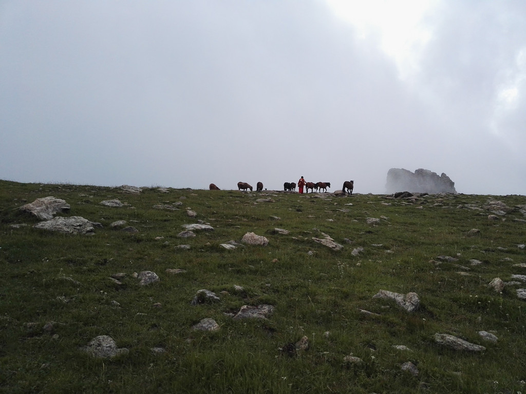 遇到马群了,挡了路,怕惊了马群里的骏马,我们从旁边的小山上绕到马群前带路。骏马,骏马,你真骏。。。