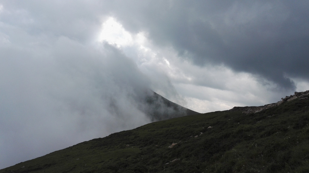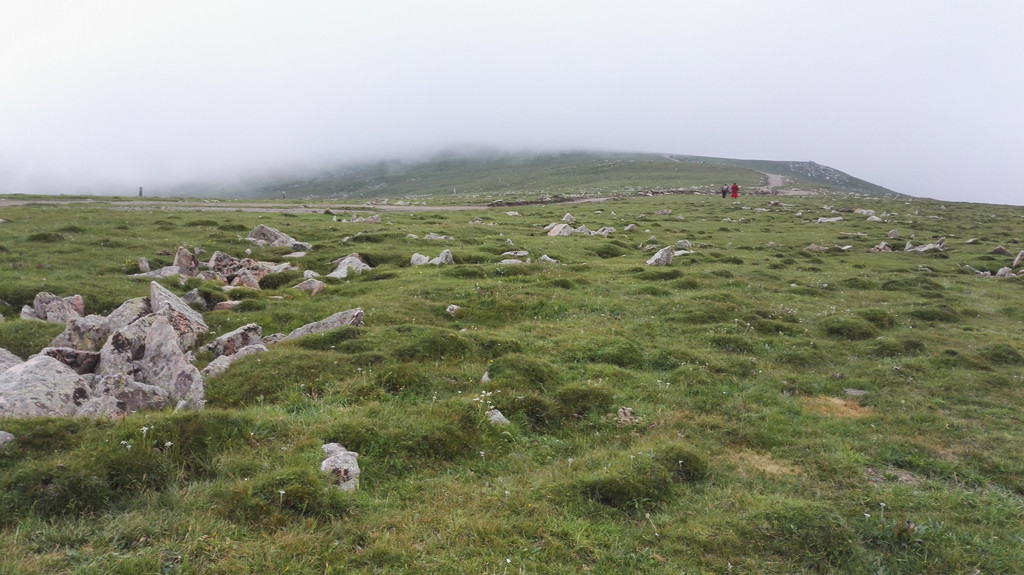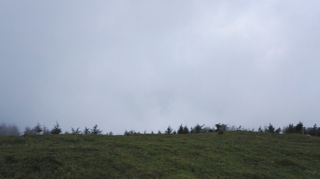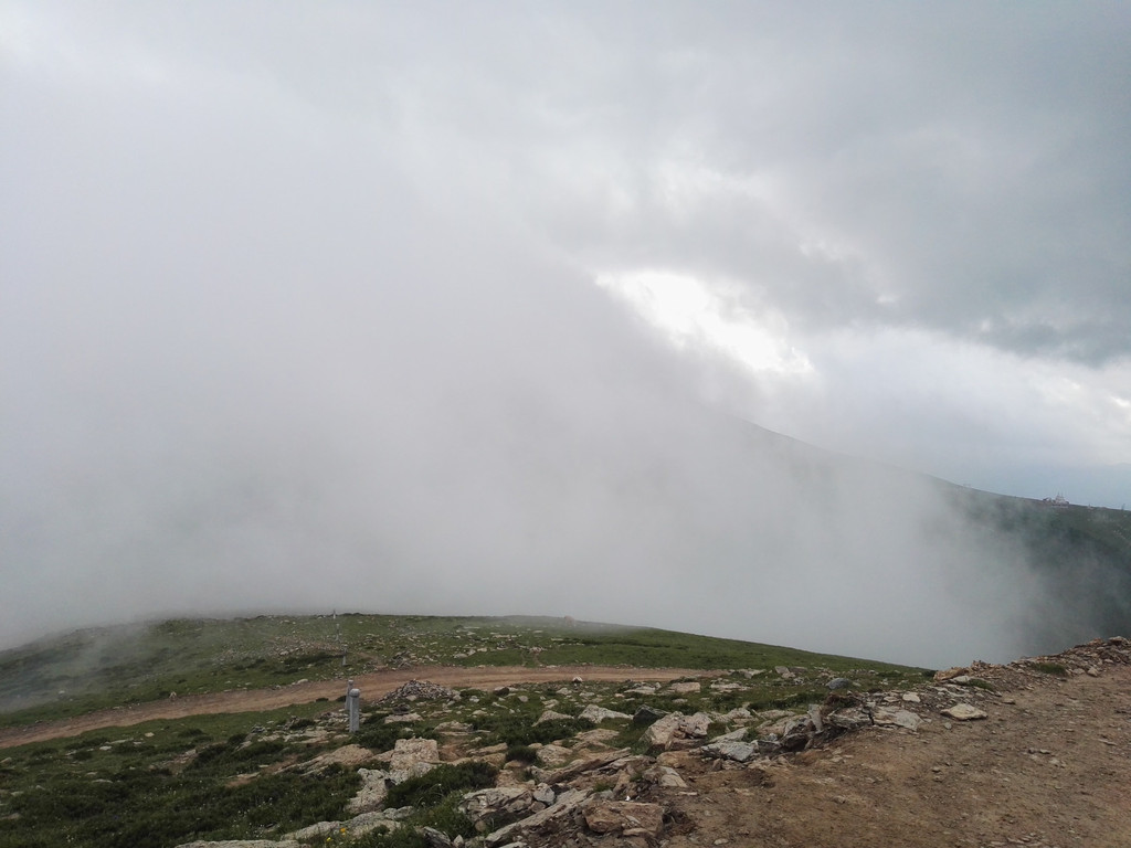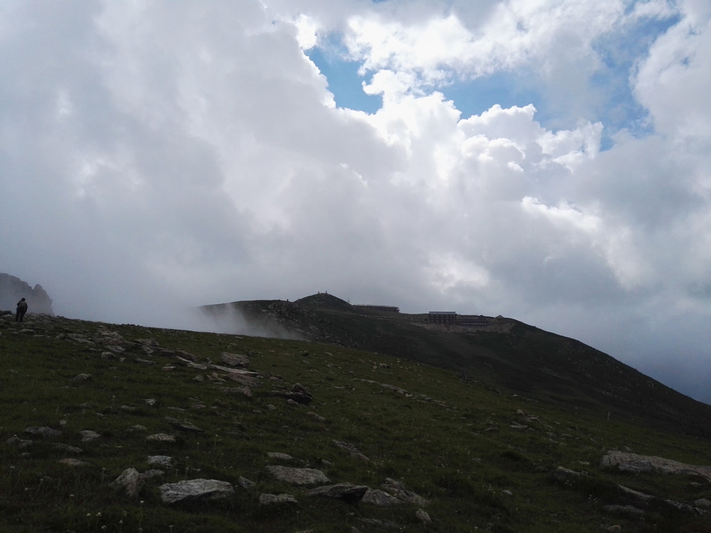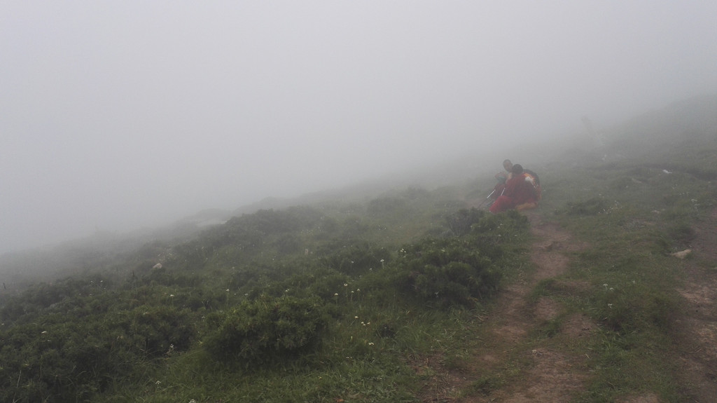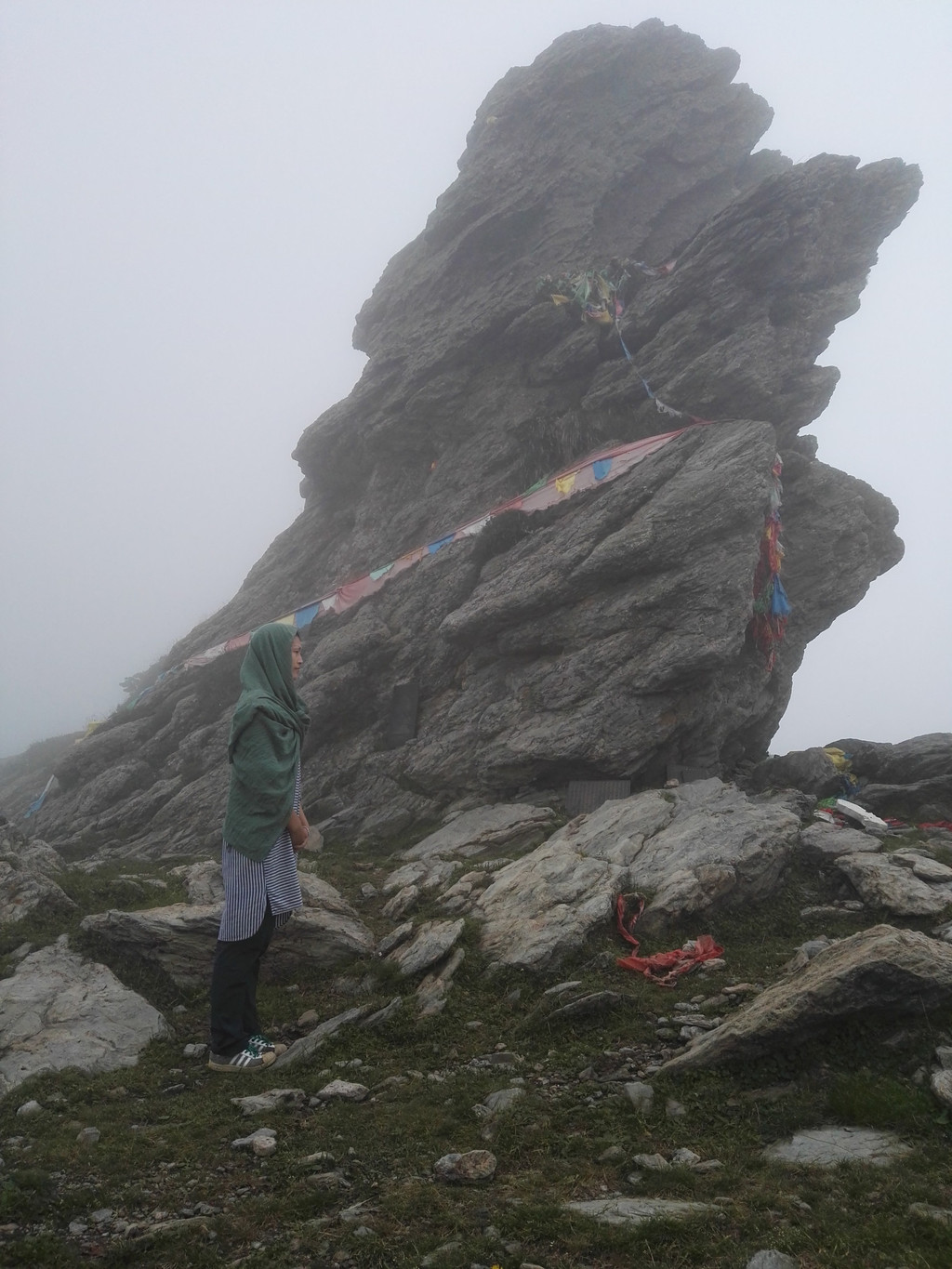 终于到达西台,还要爬上台顶,雾很大,还下着小雨,一下子变得很冷,我又冷又饿上了西台顶。