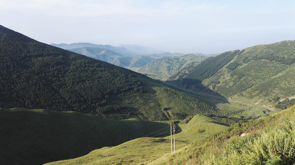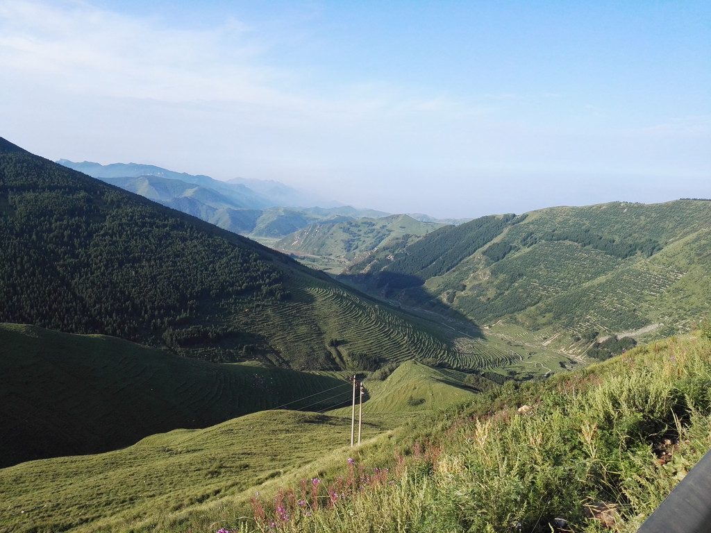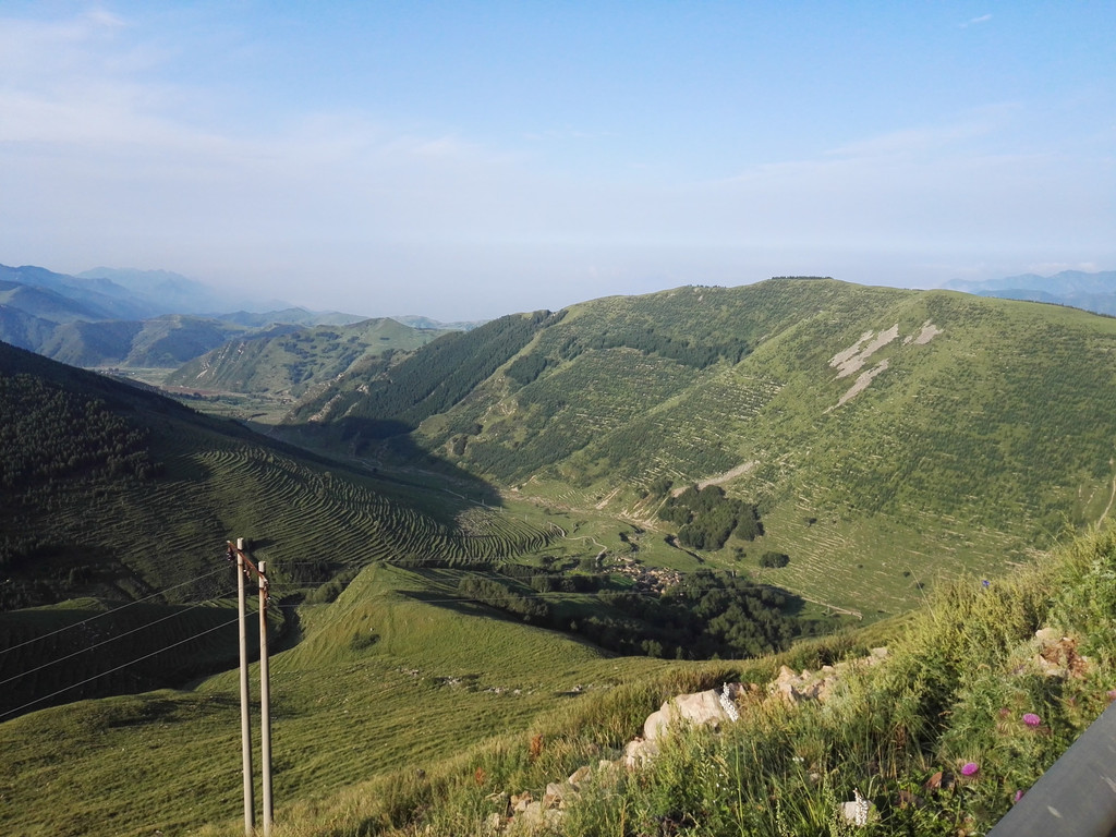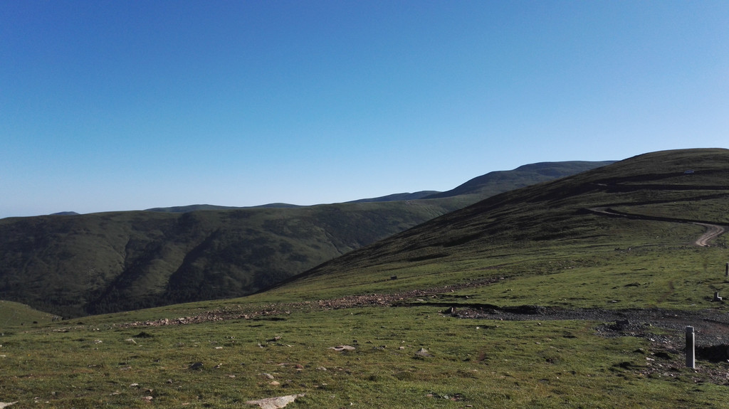 我们躺在山顶的草地上,看着远处的大山,真想睡一觉。