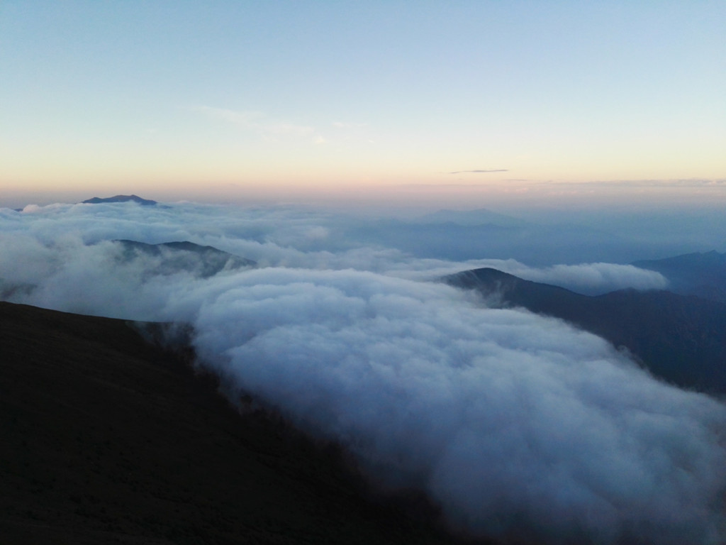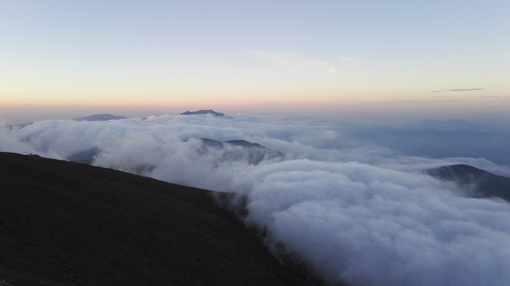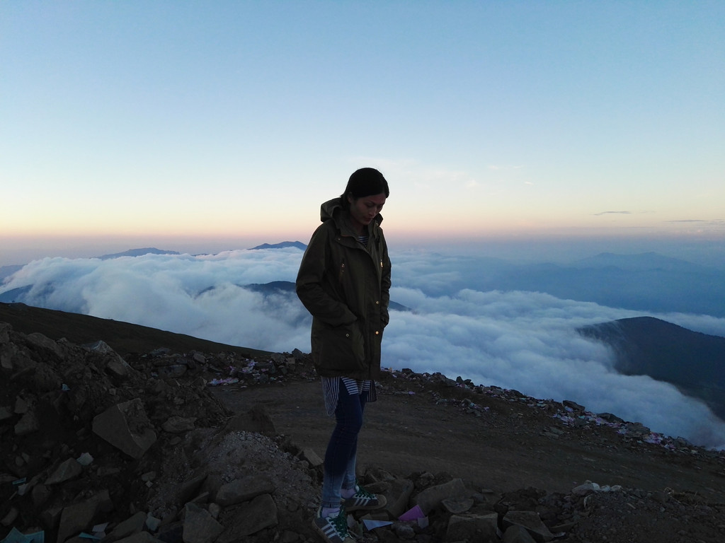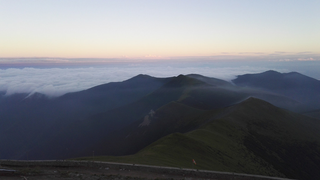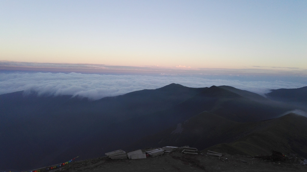 东台顶今天异常的热闹,挂单的人很多,太阳快要落山了,却还有很亮的光,壮观的云海就要出现了。