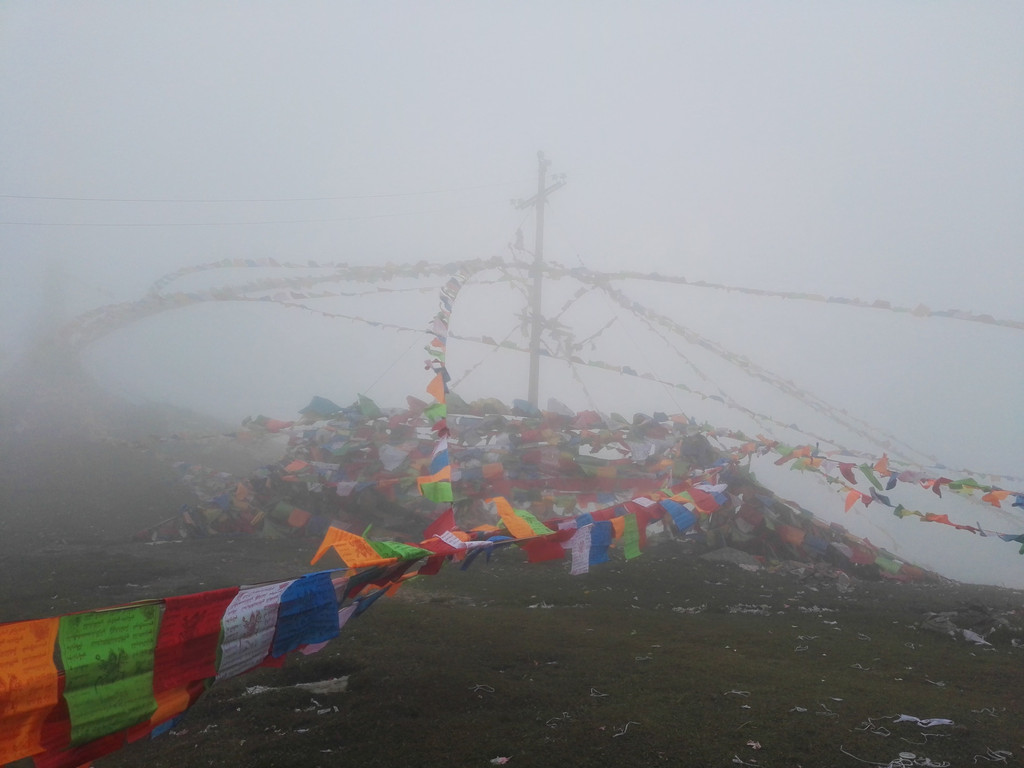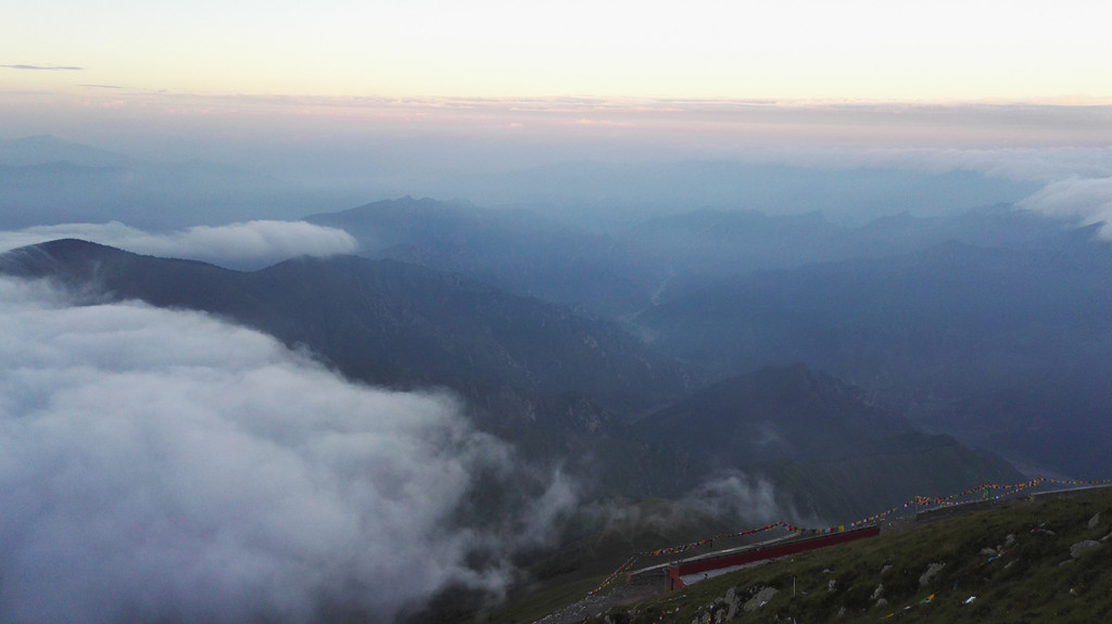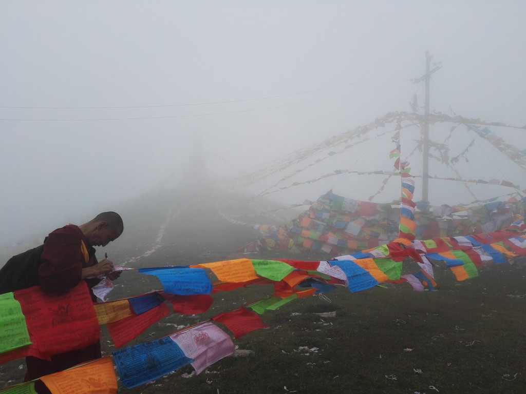 西台名为挂月峰,法雷寺供俸狮子吼文殊菩萨,阿姨说拜完大殿点完灯就出发,不然天黑前到不了中台。两位师傅在挂经幡,我和小叶点灯后跟阿姨汇合了,阿姨说师傅挂完经幡就出发去中台,我告诉阿姨我很饿,阿姨又返回寺里,僧众布施了一根玉米和一些饼干给我们,阿姨说快吃吧,很甜的,阿姨推辞,我把玉米分给小叶一半,那真是我有生吃过最美味的玉米,就着浓雾和山风风细雨,我吃下那些善良,纯朴,温暖的情谊,一点也不觉得寒冷和饥饿了。感动。。。。