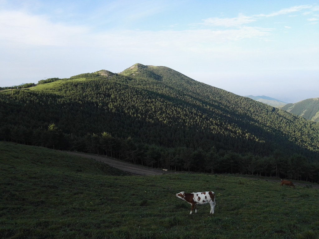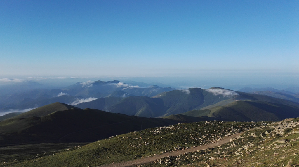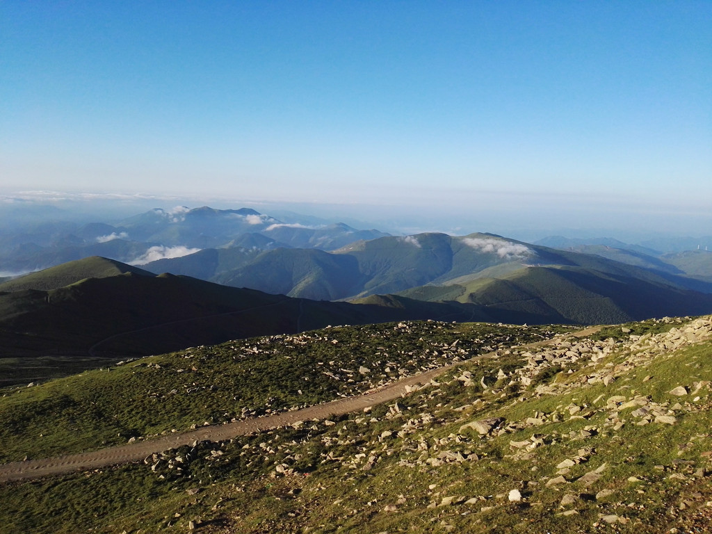 走过一段公路后雾渐渐散开,天空也亮了,小叶指给我中台顶的方向,山路就是这样,看山很近走着很远。