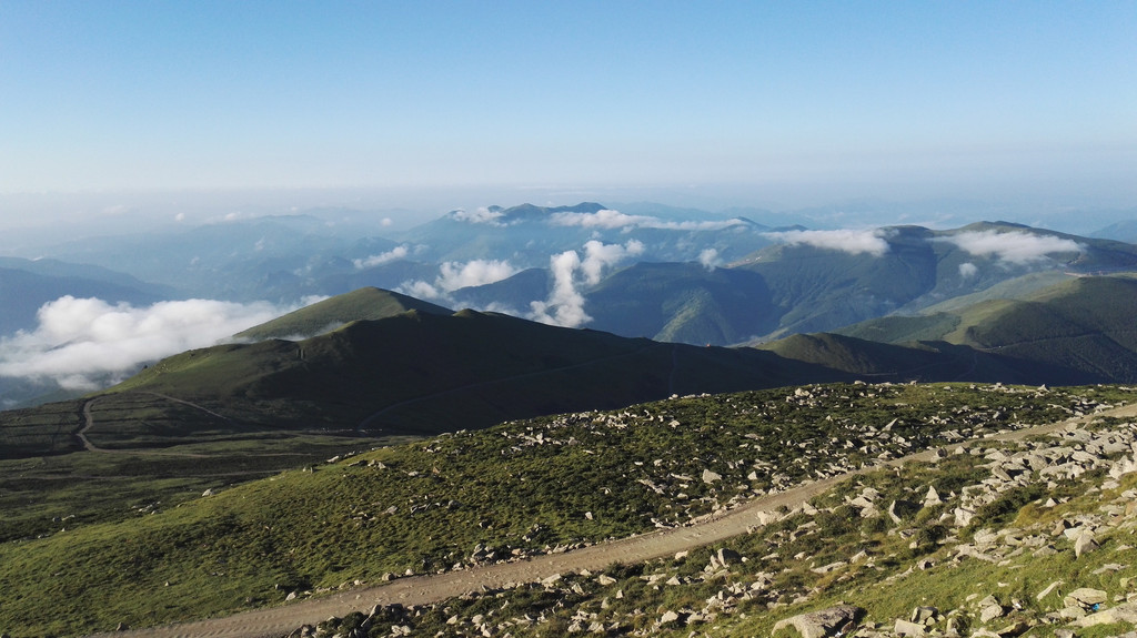 清早的中台美景真的惊艳到我了,晨曦,薄雾,蓝的天的白的云青的山,相连相融,我真的词穷了,我觉得此时中台的美远远超过了夕阳下的南台。还没吃早饭我急忙拍了些照片,因为饭后阿姨就要带着我们赶路了,小叶嫌弃我不上相,一路只给我拍侧脸,背影,不过还是很开心,看到美景就够了。