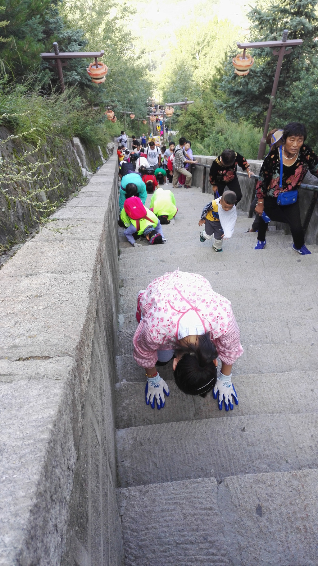 今天两位师傅的表现很好,在体力上没有明显超过我和小叶,所以我们偷偷高兴了好多下,领队文阿姨一直保持第一名,她习惯在朝台的路上念经,等我们的间隙也要拜山,从不多言。