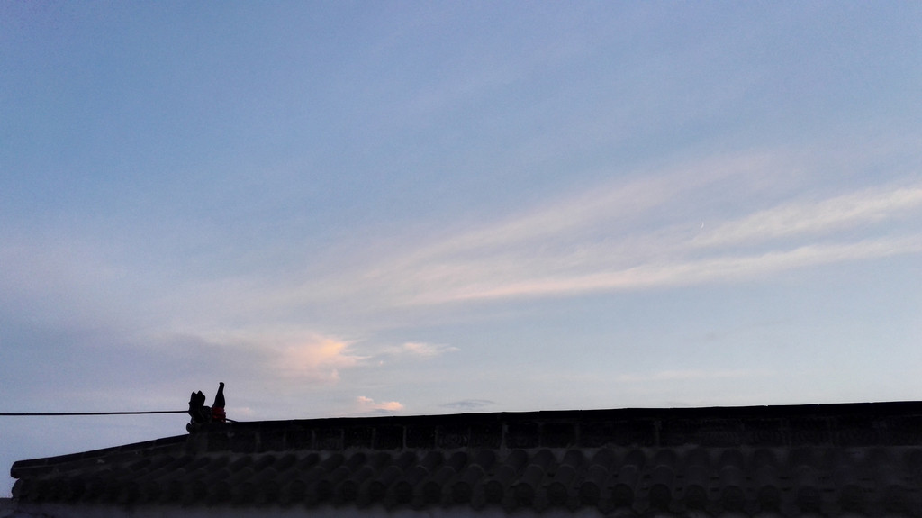 农历七月初进伏的炎炎夏日,山上的清凉让人身心舒爽,我们站在山门外,穿着外套还有点瑟瑟的发冷,我和小叶不忍错过美景,绕着普济寺的外墙走了一圈,天色暗了下来,寒气更重了,我们回到寺里准备过堂。