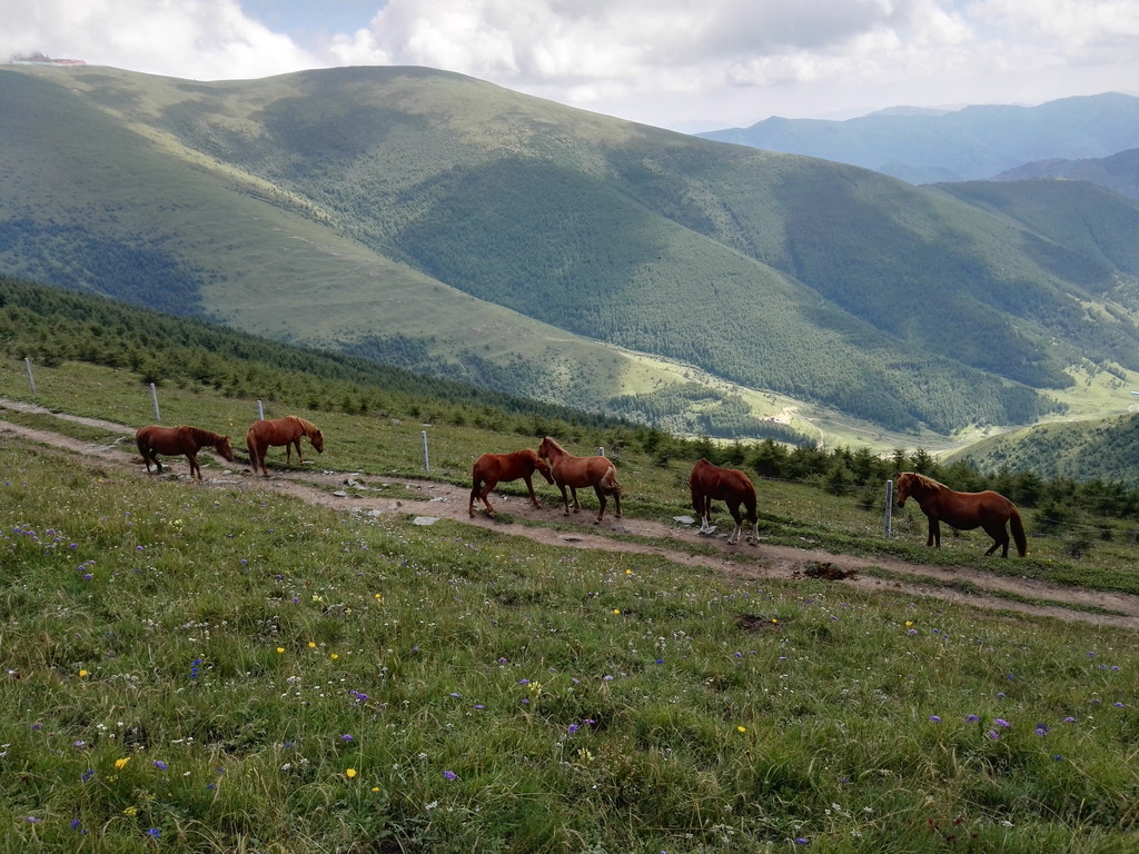 我一直不喜欢拍照,选择用心去记录一切美好的景色,这次的行程由小叶帮我完成了所有图片的内容,非常感谢可爱的姑娘。一路我越走越觉脚底生风,快到南台顶的时候,真的一点都感觉不到腿疼了,那些给我力量的石头,松树,经幡,骏马,可爱美丽的人儿们,享用不尽的微风,净化灵魂的宁静,我太爱此时拥有的一切了。