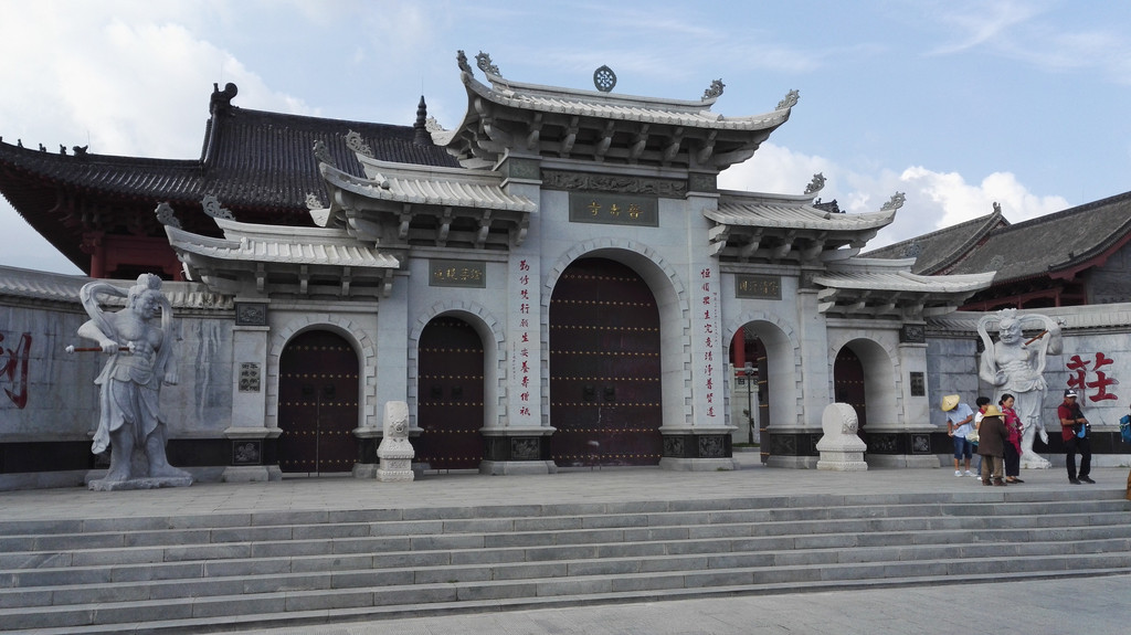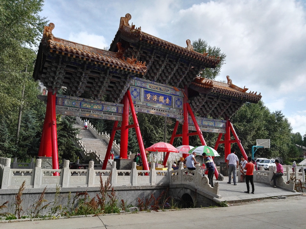 从山林小路穿过,上了公路,就看到金阁寺的南天门了,金阁寺的规模宏伟,富丽堂皇,寺内供俸五台山最大的观音菩萨。