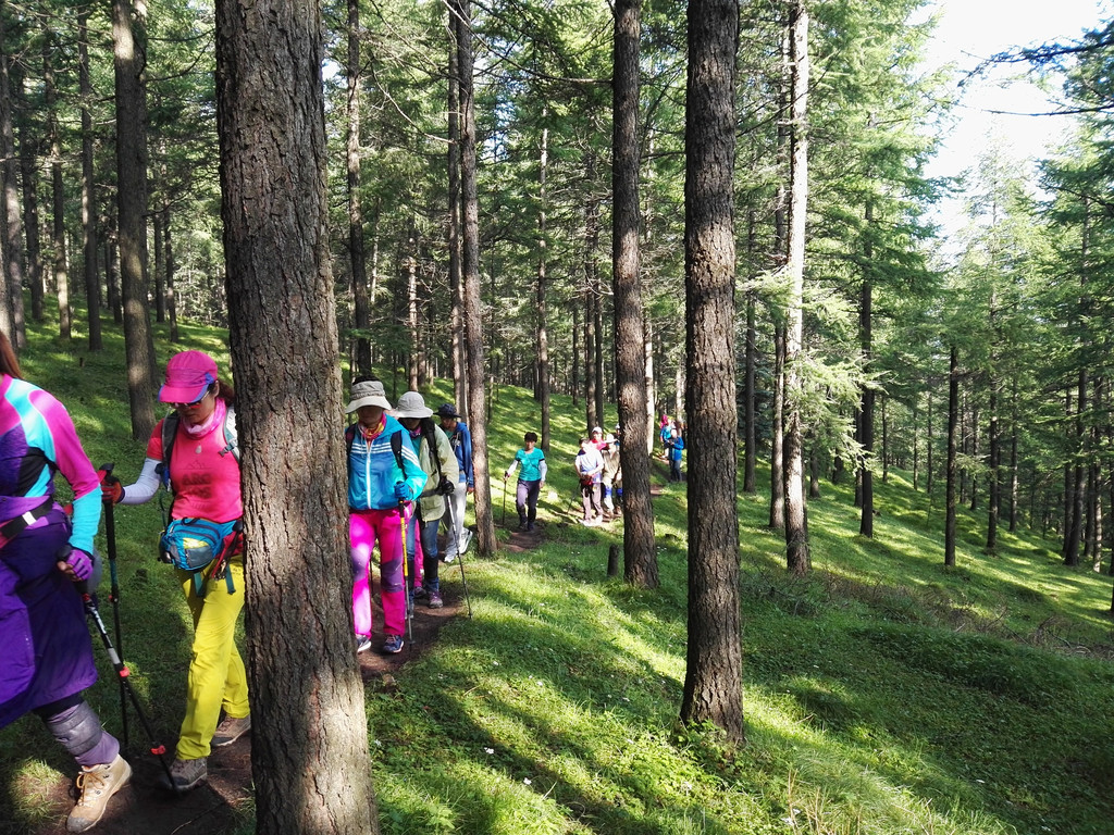 这一路我和小叶还是欢声笑语,今天两位师傅一改昨天的肌无力,一路飘乎前行,阿姨说修行的师傅走路不同于常人,看上去缓缓行走,前进的速度却超过常人的狂奔,我和小叶明显落后了,惹得阿姨总是在前方隔着树林喊话,跟上了吗?听到我们回应,她才接着前行。