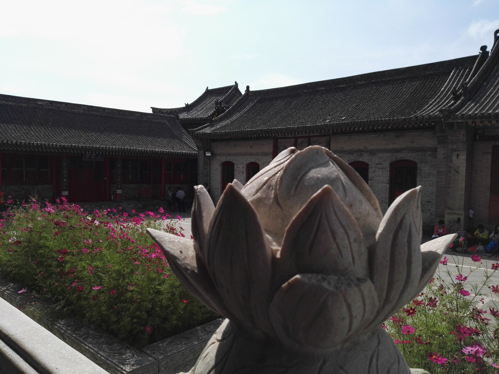 拜完文殊菩萨在大殿点灯后我们在院中休息,商量下一步行动,由于阿姨明天还要带居士朝台希望能尽快到达东台然后回台怀镇。胖师傅的腿疼不能行走太快,寺里的师傅布施了膏药给他,他决定 留下过堂,我们四人便上路了。