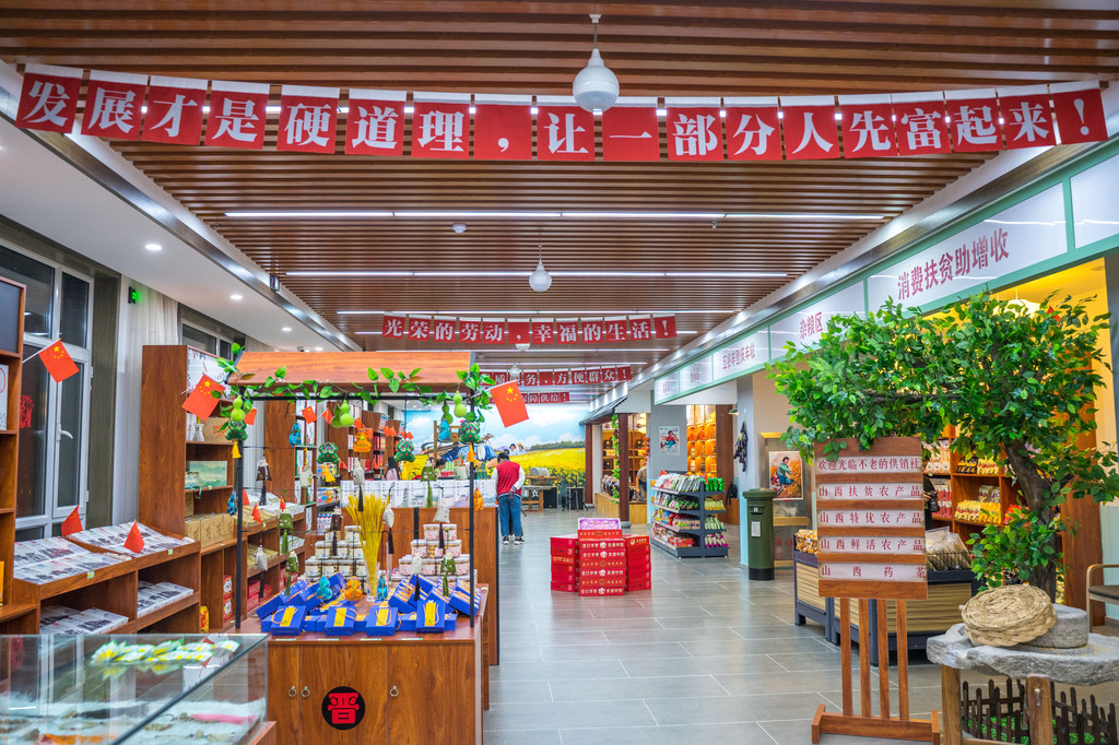 从五台山返回到山下遇到一处有着浓浓的70年代的风格的供销社,首先映入眼帘的是供销社门口上写着不老的供销社的醒目的招牌,和造福人民保障供给的口号,让人忍不住想一探究竟。