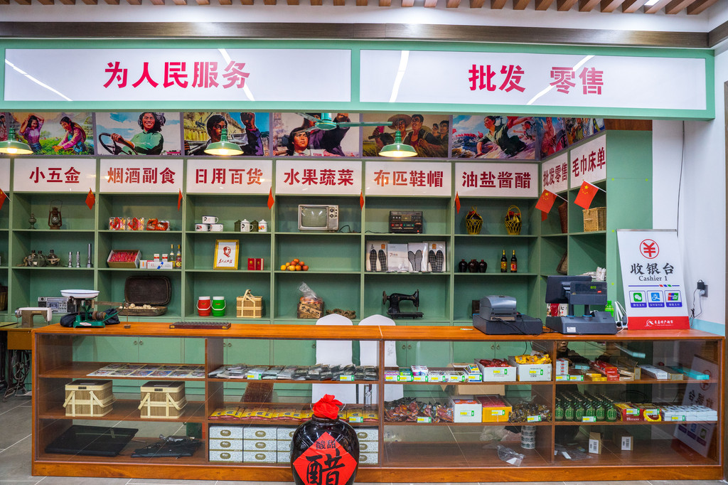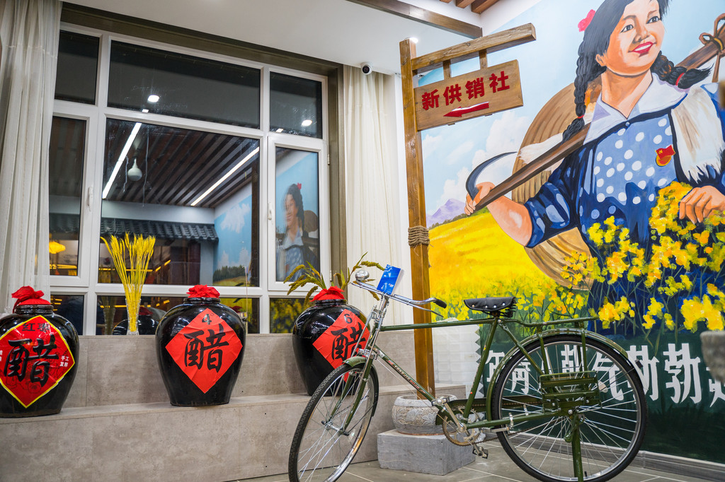 走进供销社内部,忽然有一种穿越的感觉。满屏溢出来的复古风,映入眼帘的这些老物件就摆在你的眼前,仿佛时间凝固在了那个年代,从地面到桌子,从墙面到柜台,是个拍照凹造型的绝佳地点!