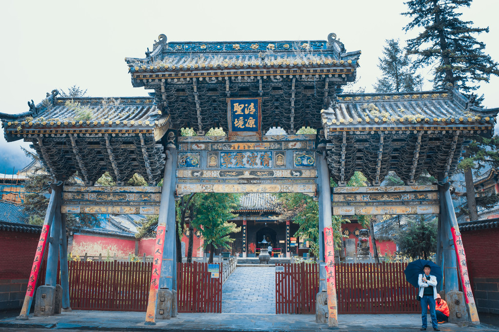 来到寺院大门口还没进去,就看见一座雕工极其精细的木牌楼上,悬着一块书有“清凉震萃”的匾额。还以为走到了清凉寺,其实五台山又称清凉山 ,清涼聖境应该与此有关。