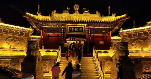 广华寺因为夜景极美成为现在的五台山网红寺庙,唯一一座晚上开门的寺庙,早晚都有免费法事供香客参与,历史悠久,是五台山著名的华严道场,在其后殿后至今还保存着一座北宋元丰三年(1080)的一座八角单亭阁式石塔。塔身正面下部刻一方门,门之两侧下方还雕有两位金刚,门之上方为一竖匾,上书“宋故金坛郎十宫德之塔”,字体刚劲有力,似为瘦金体。该塔通身由青石雕成,雕刻华丽细腻,十分典雅精致。广化寺,具有颇高的学术价值。