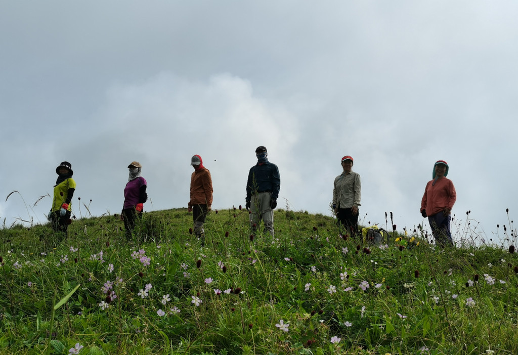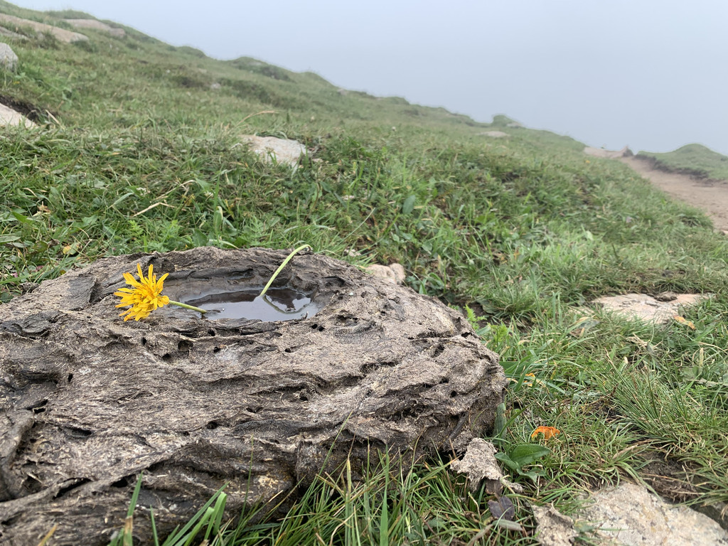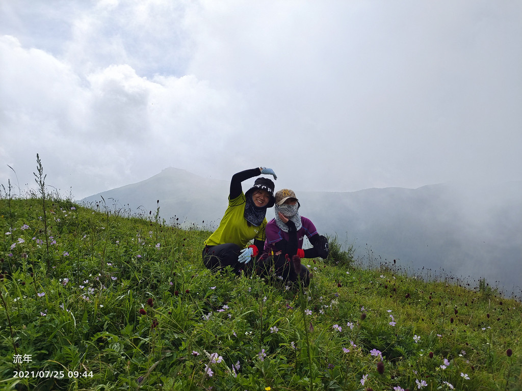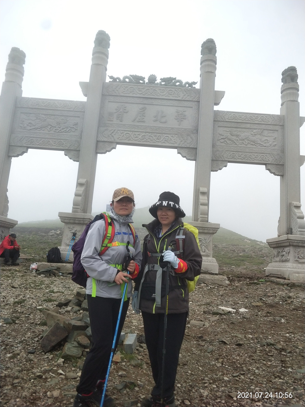 这时疲惫满满,到达北台已经12点,此时也是被大雾笼罩,能见度5米,早到的队友可以看清全貌,稍作休整继续出发