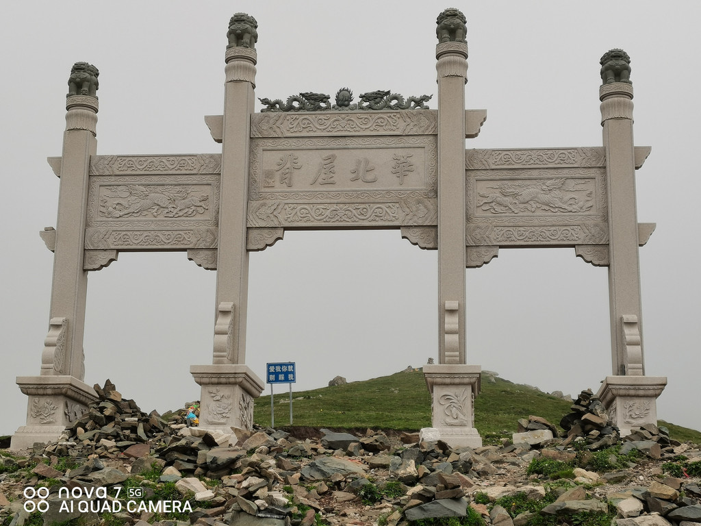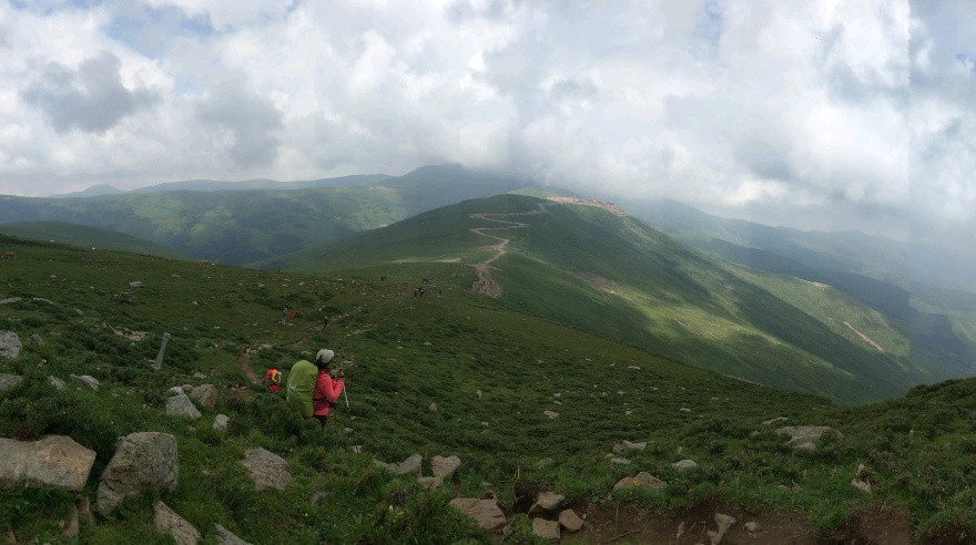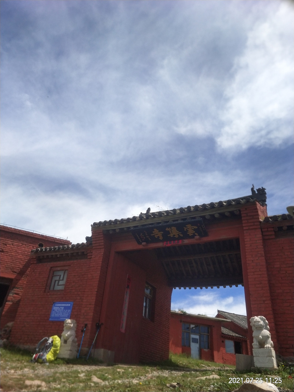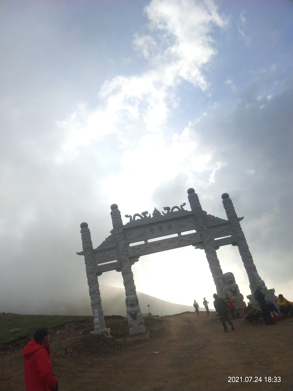 中台至西台爬升约200米,里程约5公里,大部分都是下坡路,草甸碎石路夹杂,全靠一颗坚定不放弃的心??挪到了法雷寺门楼,看到领队和其他队友,心中顿感安慰,疲惫也扫去一半(龙门头顶像极了“飞龙在天”