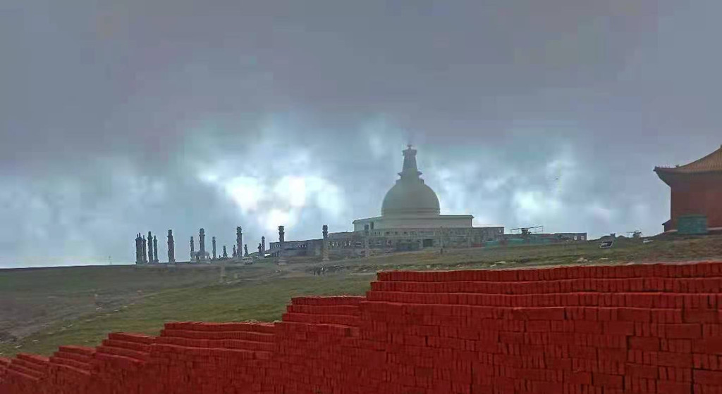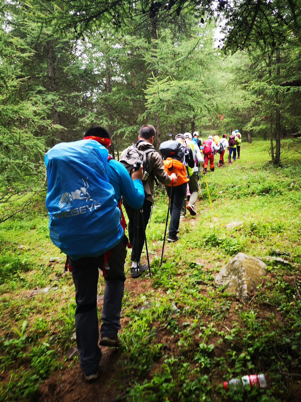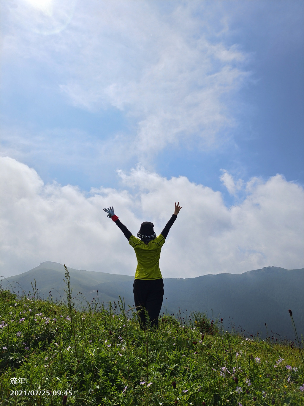 中台至西台爬升约200米,里程约5公里,大部分都是下坡路,草甸碎石路夹杂,全靠一颗坚定不放弃的心??挪到了法雷寺门楼,看到领队和其他队友,心中顿感安慰,疲惫也扫去一半(龙门头顶像极了“飞龙在天”