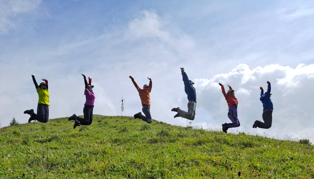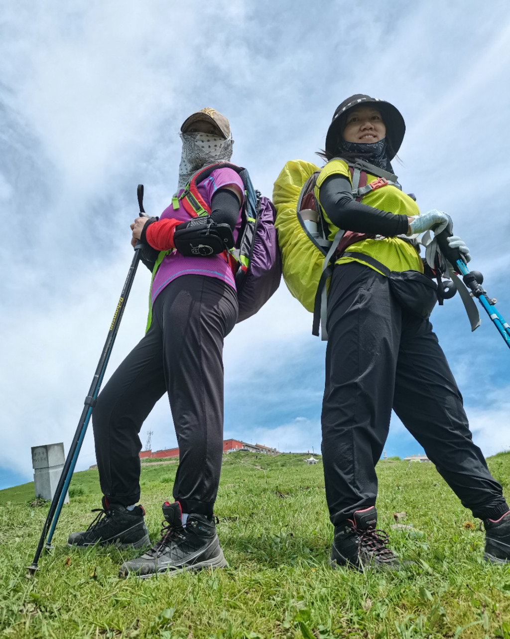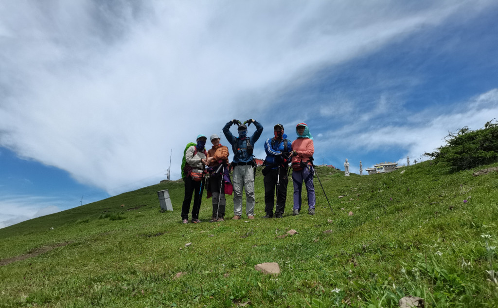 从金阁寺水草滩出发,爬升约550米,里程约16公里,南台一路欢声笑语,还有长钢的五位朝台队友同行(有第七次朝台的玲姐,其他也有两次,三次),一路讲解,给我们拍照,好不惬意,在此再次谢过,没嫌我们小白姐俩
