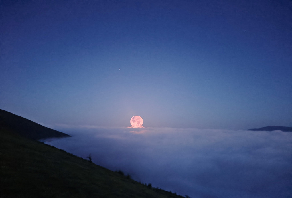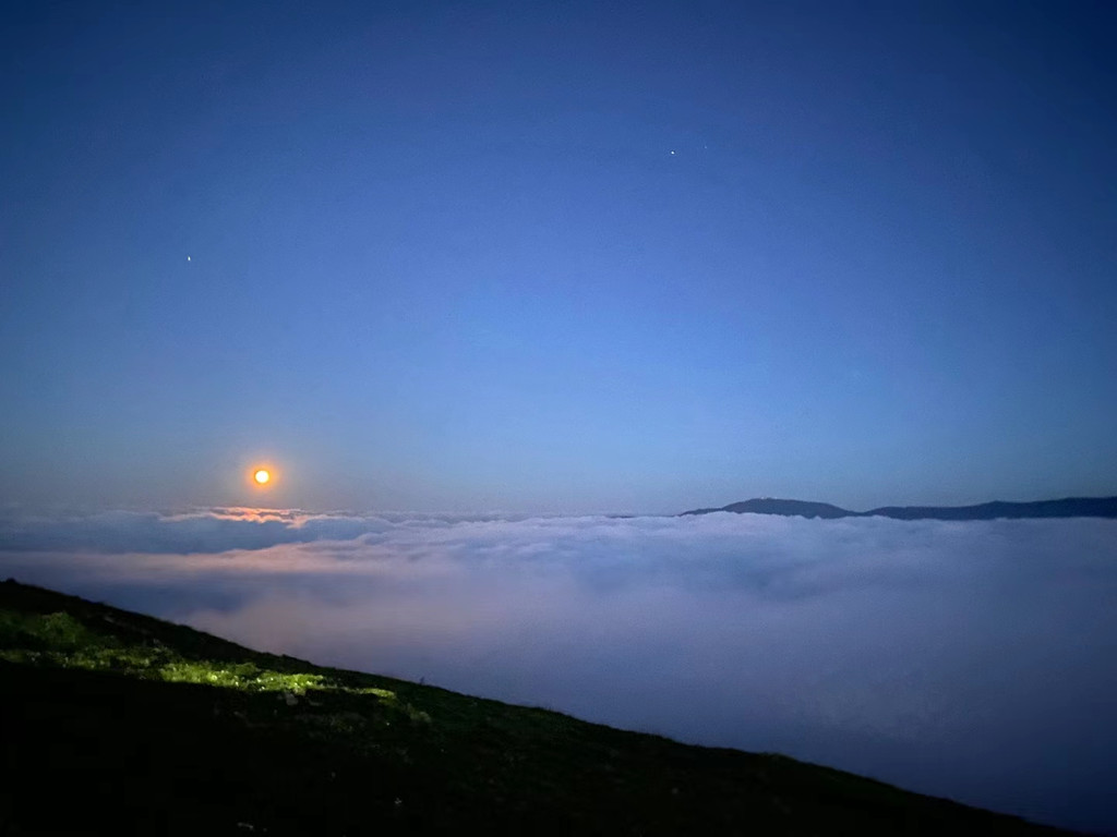 过程总是艰难的,但看到凌晨三点,西边云海满月,东边绯红的亦如画笔渲染出的云天一线,顿感前路可期