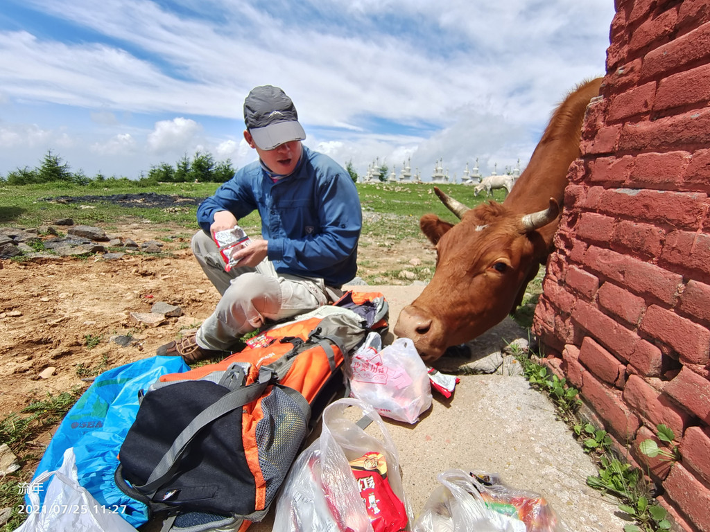 第三站:中台,又名翠岩峰、演教寺,建于隋朝,位于台怀镇西北10公里处,海拔2890米,地形状如雄狮,仅次于北台,距离北台5公里,爬升约150米,先到澡浴池,吃饭休整,不得不说澡浴池的商业化太浓重,我们过澡浴池100米处吃路餐(莫小仙的腊肠饭)味道不错