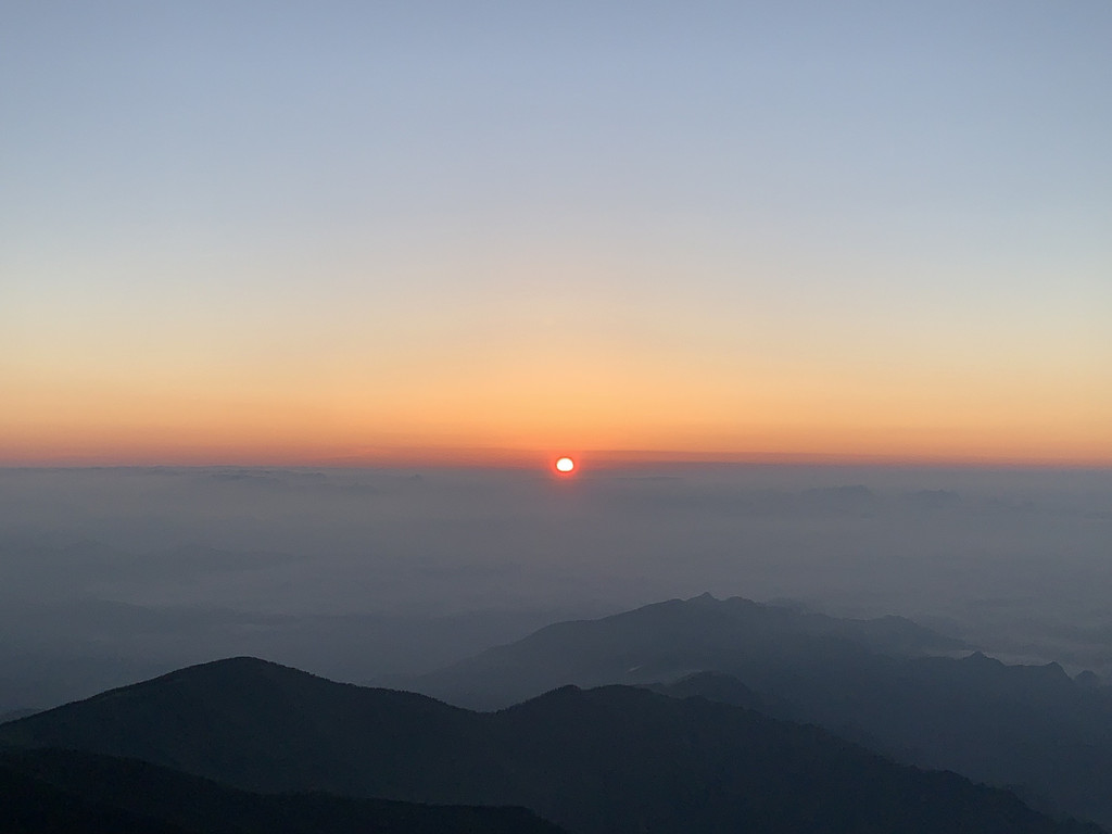虽不是第一次看日出云海,但每次感觉都不一样。以前就是远远的望着,这次很近,很清晰,感觉伸手就可以触碰到太阳?,被云海环抱着,很温暖,有种幸福的滋味