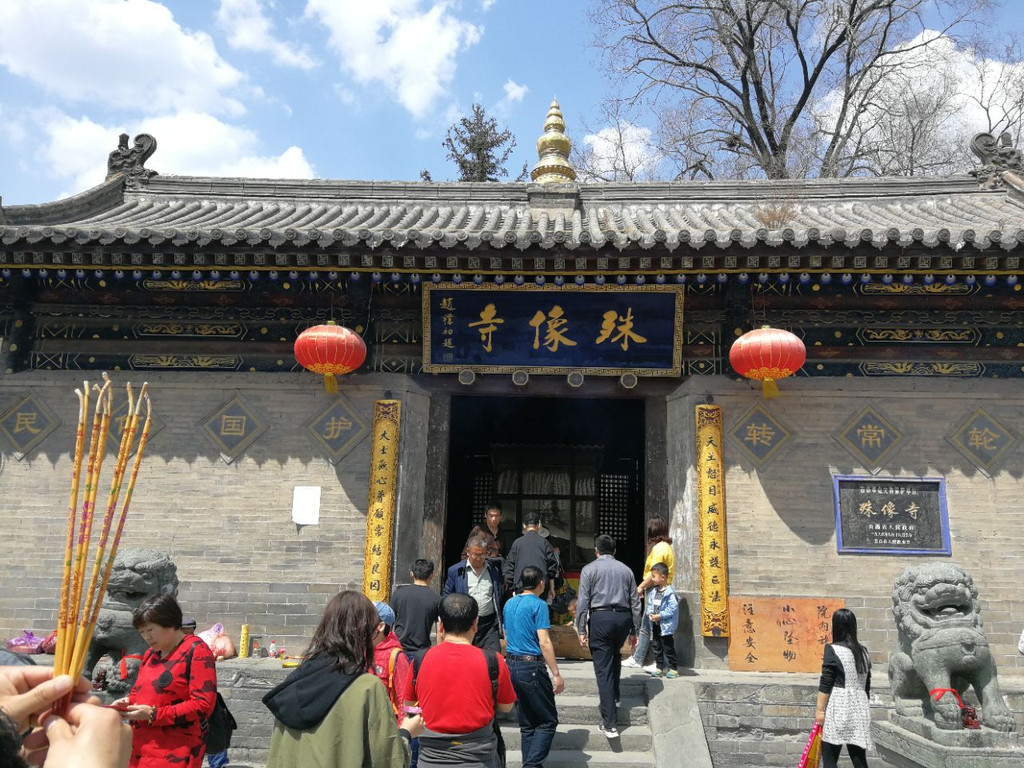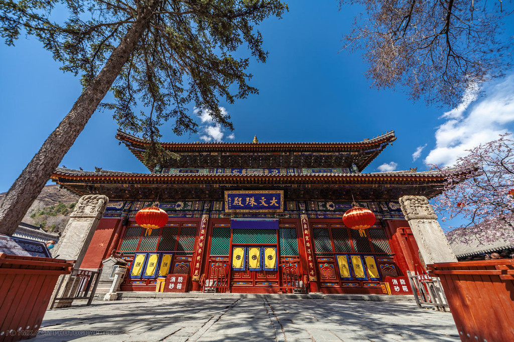 殊像寺的建筑风格古朴典雅,红墙金瓦在阳光下熠熠生辉。寺庙内的佛像栩栩如生,每一尊都散发着一种神秘而庄严的气息。我沿着石阶走进寺庙,只见香烟缭绕,信徒们虔诚地跪拜着,口中念念有词。