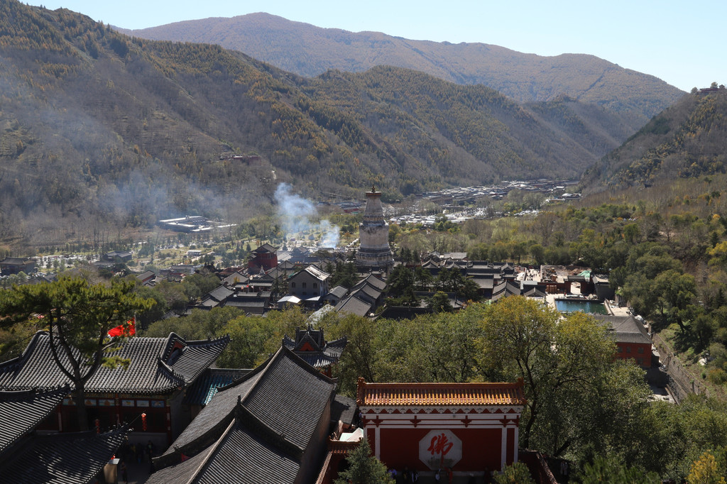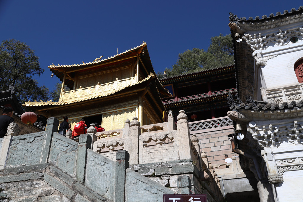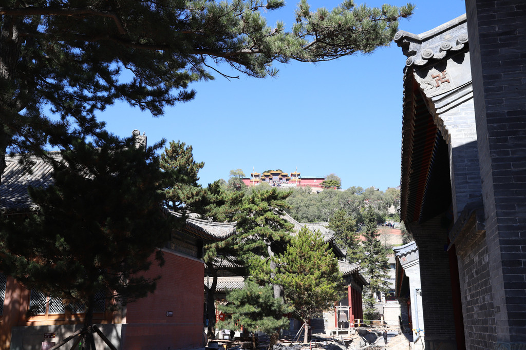 菩萨顶的台阶上,是俯拍中心寺庙群的好地方。