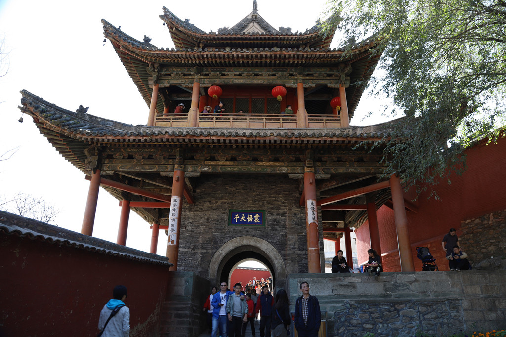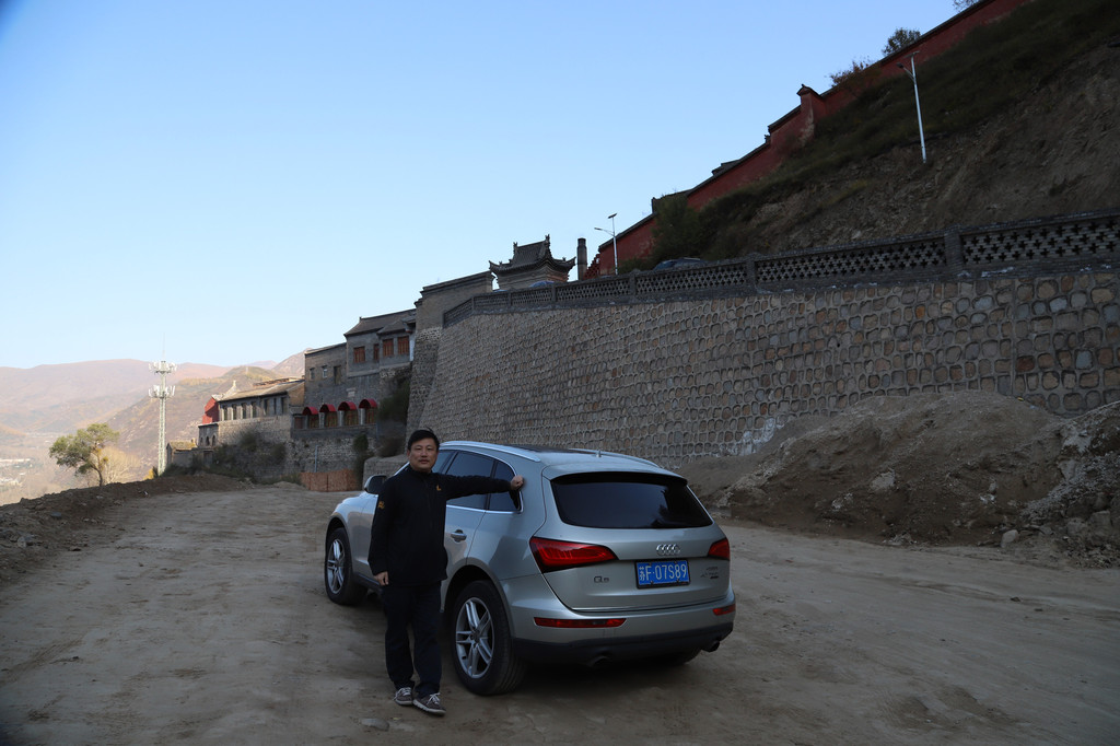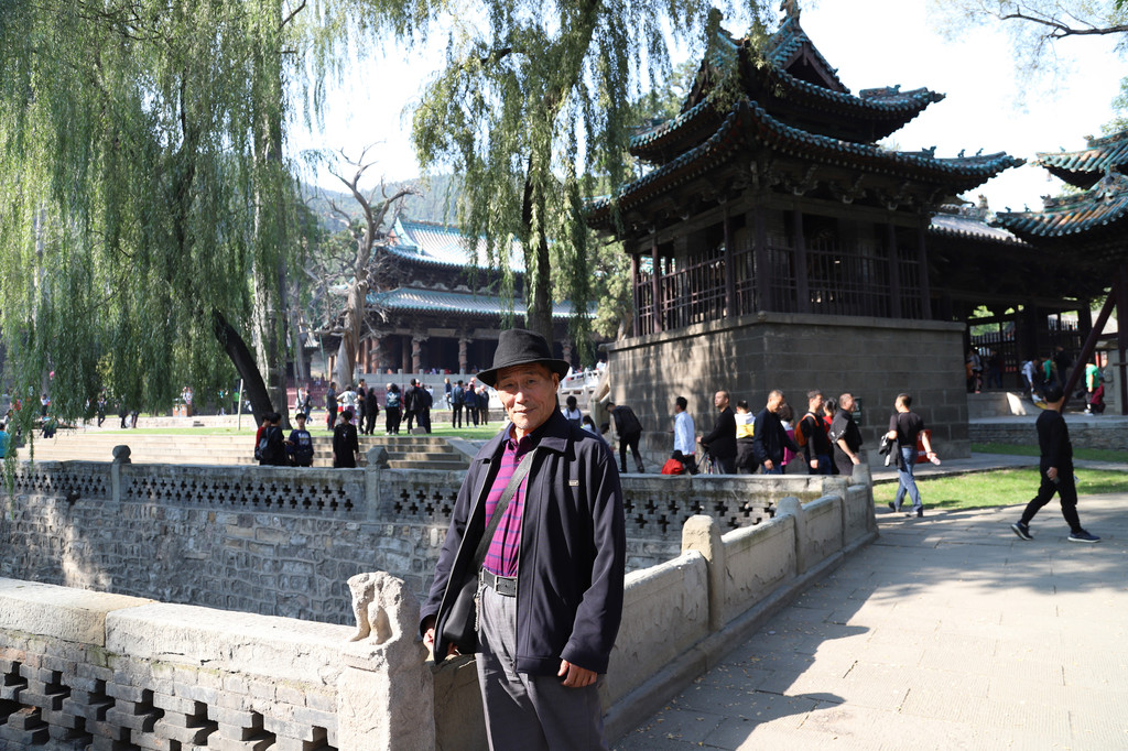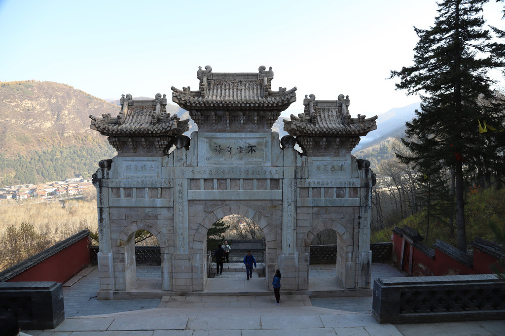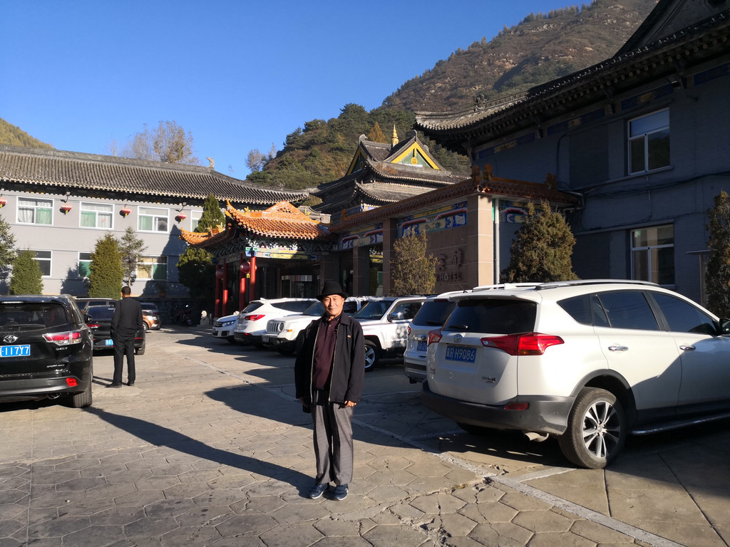 早上退房后,8点钟驾车来到宾馆对面半山腰的南山寺,从后门进的,先去是万圣佑国寺,二楼的殿里有泥塑,僧人不让拍。出了佑国寺来到极乐寺。五台山要数南山寺的影壁最大,影壁后面,走108级台阶,会看到一座全部以白石雕刻的牌楼,非常气派,我们是从山往下看的牌楼,看不到影壁。南山寺是一处游人相对较少的清净之地。南山寺很大,是由三个寺组成的,我们只转了半小时,拍个我和Q5和南山寺的合影离开五台山。