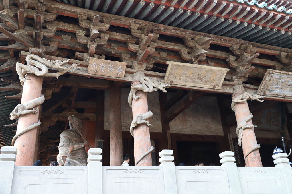 木雕盘龙是中国现存最早的盘龙雕柱,雕于宋元佑二年(1087年)。八条龙各抱一根大柱,怒目利爪,周身风从云生,一派生气,虽已近千年,鳞甲须髯。