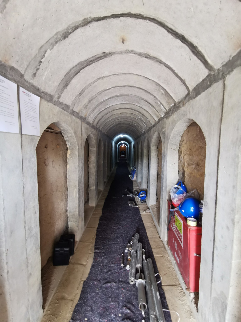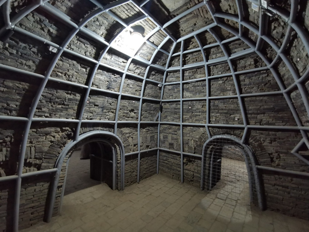为保护古墓,墓室及墓道都用钢管予以加固。前室、中室、后室的墓顶均为覆斗式,里面都是空空如也。