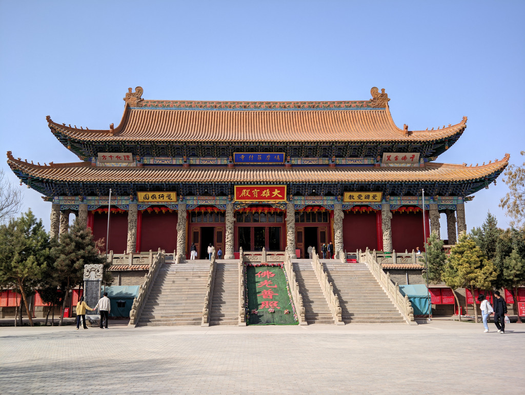 与明代布局平面相比,中轴线上的“七堂建筑”大多存在,只有天王殿不存,寺前增加了牌楼。