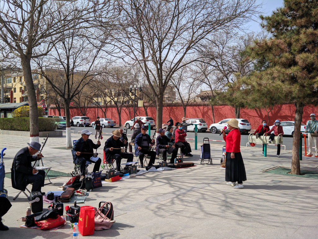 文庙外的广场很热闹,好多老人家在玩文艺,也是一景。