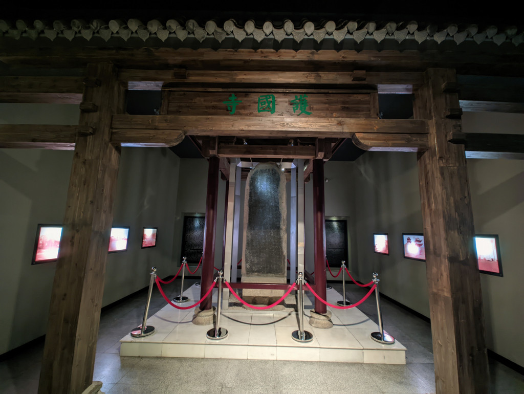 在一座不起眼的二层仿古建筑前,矗立着一块全国重点文物保护单位的碑,标志着这里珍藏着非凡的文物。这块碑就是《凉州重修护国寺感通塔碑铭》,是全国唯一一块完整的汉文和西夏文对照碑文,被誉为武威西夏博物馆的镇馆之宝。