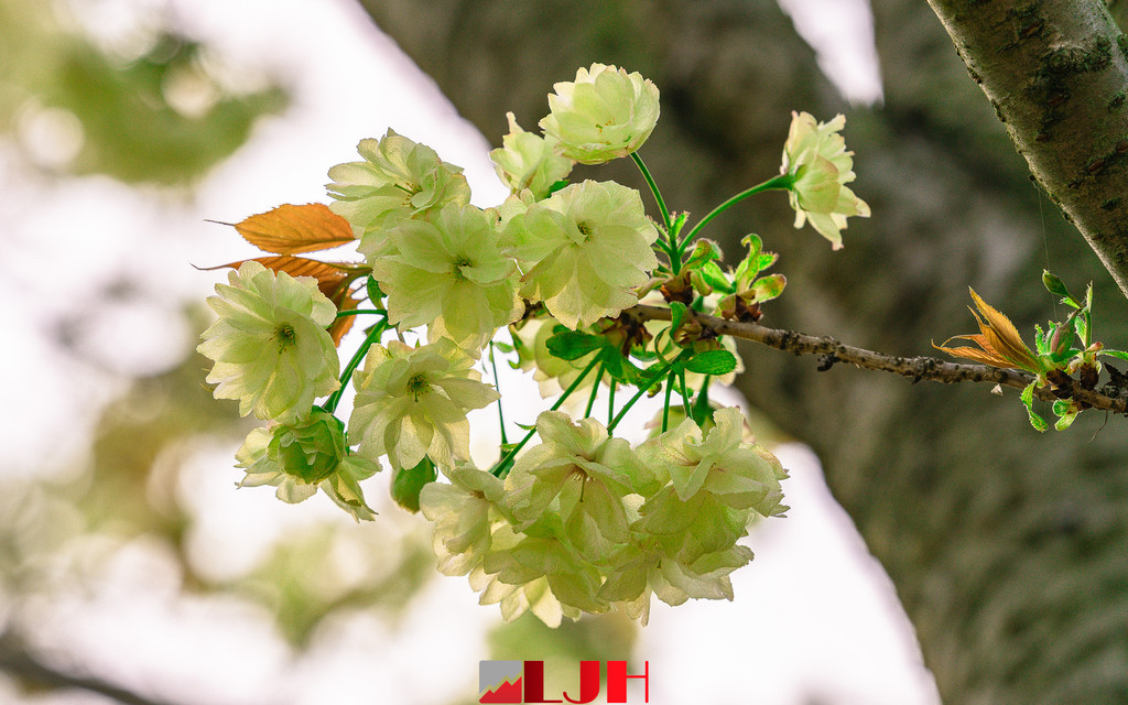 每年的三月至四月,是无锡太湖鼋头渚的樱花季。樱花季分成早中晚三个观赏时段,每个时段能欣赏到的樱花品种也各不相同。随着中期樱花、白色的染井吉野樱渐渐谢幕,晚樱开始了缤纷。而赏晚樱的最佳地点,就在鼋头渚景区的樱花谷内。这两天,樱花谷内有一种珍贵的绿樱花盛开了。