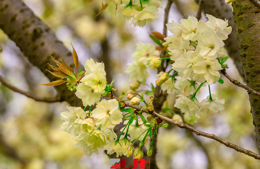 人们常见的樱花,以红色、粉色、白色为主,能开出绿色花朵的樱花树种比较少见。绿樱花,有个非常好听的名字叫“郁金樱”,它属于晚樱家族中的一员,不过种植甚少。郁金樱初绽的时候,绿色的特征非常明显,花瓣的底部绿色的色泽最深。等到花朵开足时,绿颜色会渐渐变得浅淡绿,甚至带有一丝淡黄色。而到后期时,绿色的花瓣将蜕变成黄白色,直至掉落。所以郁金樱还有另一个学名“变色樱”。