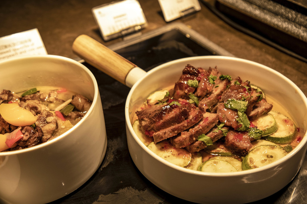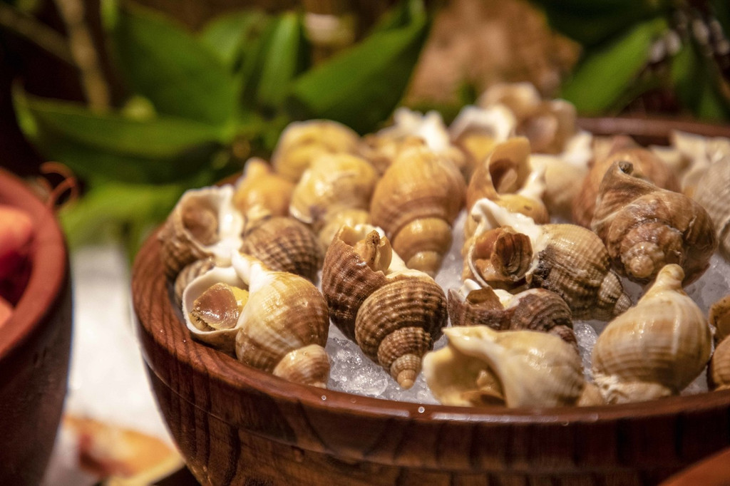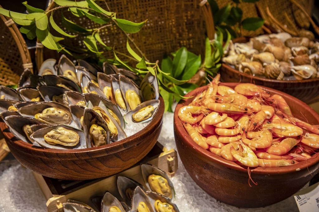 中西餐搭配,荤素搭配,无限量供应的海鲜更是让人喜爱,大明虾、花螺、青口贝等等,刺身新鲜美味、补货及时,现场烤制的牛羊排经过就拖不动腿,一定要来上一款肥瘦相间的羊排。