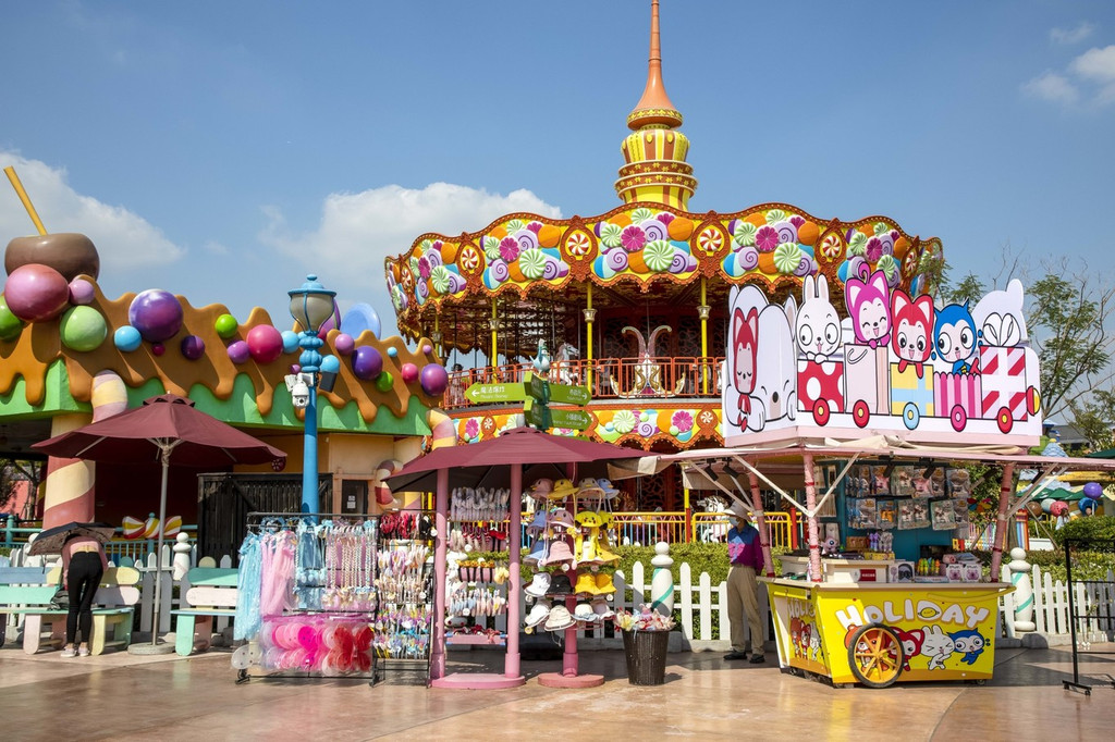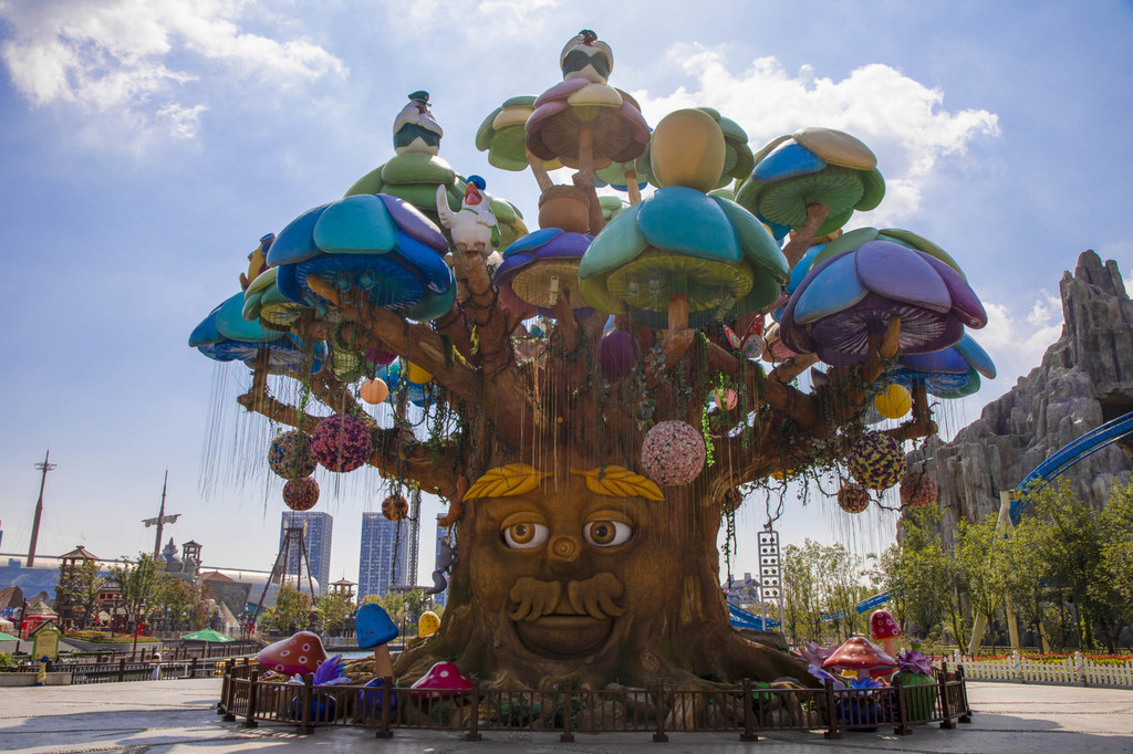 走出了古香古色的 江南 水乡,正式开始主题乐园的旅程,泡泡泉小镇从名字上就能知道这是一个很可爱的地方,小镇的风格特别可爱,每一个细节都能萌化你,十分的可爱到,这里有开满了七彩花的树爷爷,还有备受大人和小孩都喜欢的旋转木马,充满欢声笑语的碰碰小虎,每一个游玩项目都能够让人童心大发。