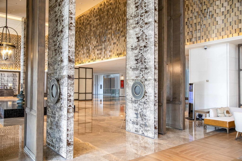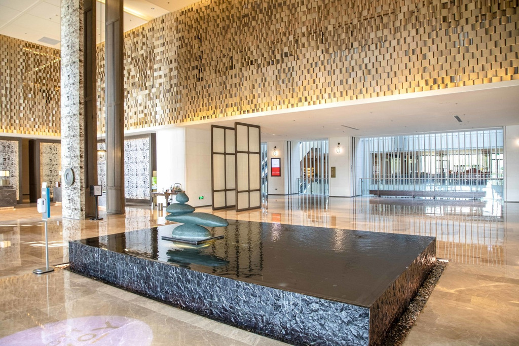 酒店大堂的每一个细节都体现设计的用心,轻柔的色调,尽显东方的古朴与典雅,大堂的设计更是融入了江南 “南朝四百八十寺”的元素设计而成,将东方的古典和现代的简约完美融合。