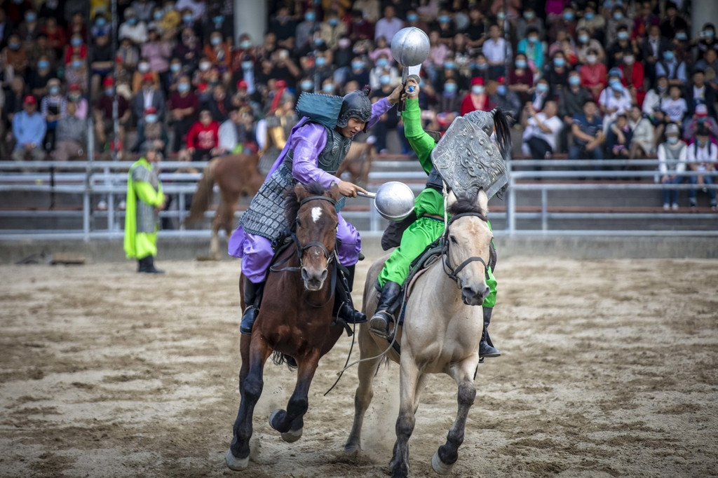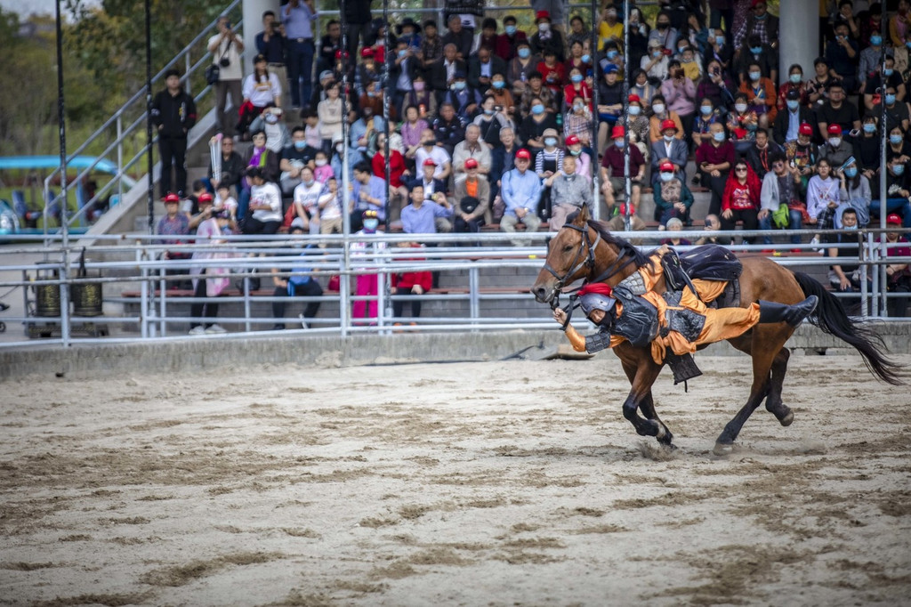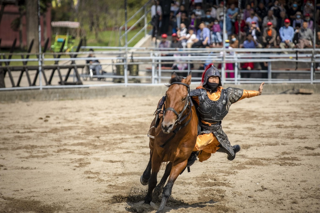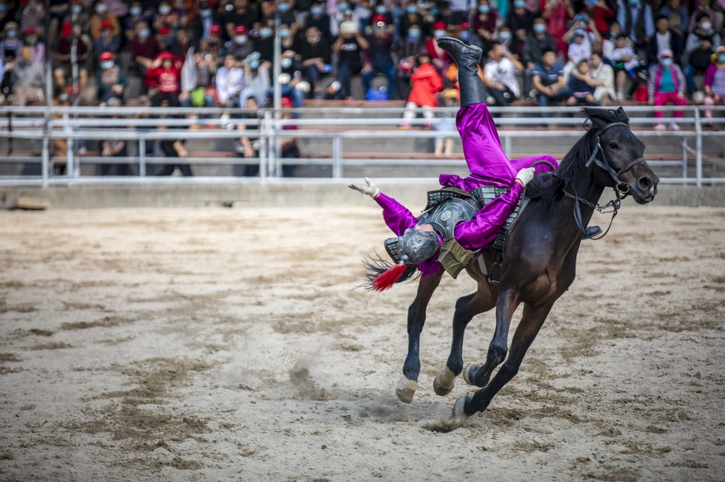 虽然名字叫做“三英战吕布但”演出一开始,每一位“武将”都会轮番出场,来展示自己的马上绝技,若是没有扎实的基本功,一定无法完成这些高难度的动作。