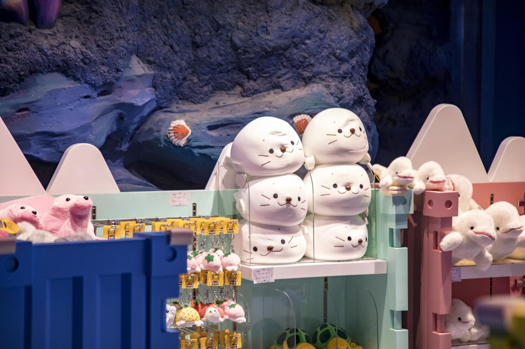海洋馆内的纪念品商店,售卖的全都是可爱的海洋动物,在海底世界近距离的观赏这些小可爱过后,你是否也有一种冲动,想养一只海豹或者白鲸那?哈哈哈...饲养它们是虽然是不现实的,但可以把这些可爱的周边带回家~
