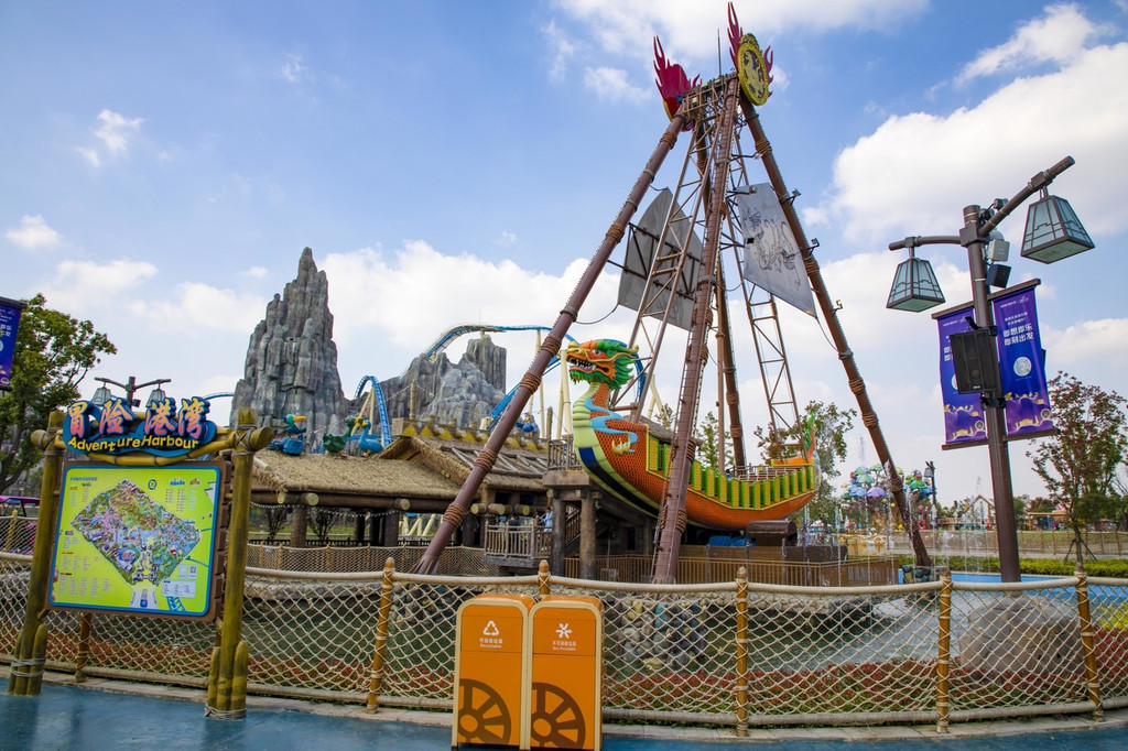 冒险港湾整个区域的项目可以说是基本上承包了年轻人所有的欢声笑语及尖叫,西洋惊涛,吴王宝剑,吴王之盾,龙船飞渡等七个大项组成的冒险港湾,其中西洋惊涛也是整个乐园中必打卡的项目之一,以郑和下西洋的故事为背景,沉浸式的体验身临其境经历一场惊心动魄的正邪海战。