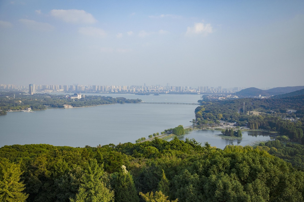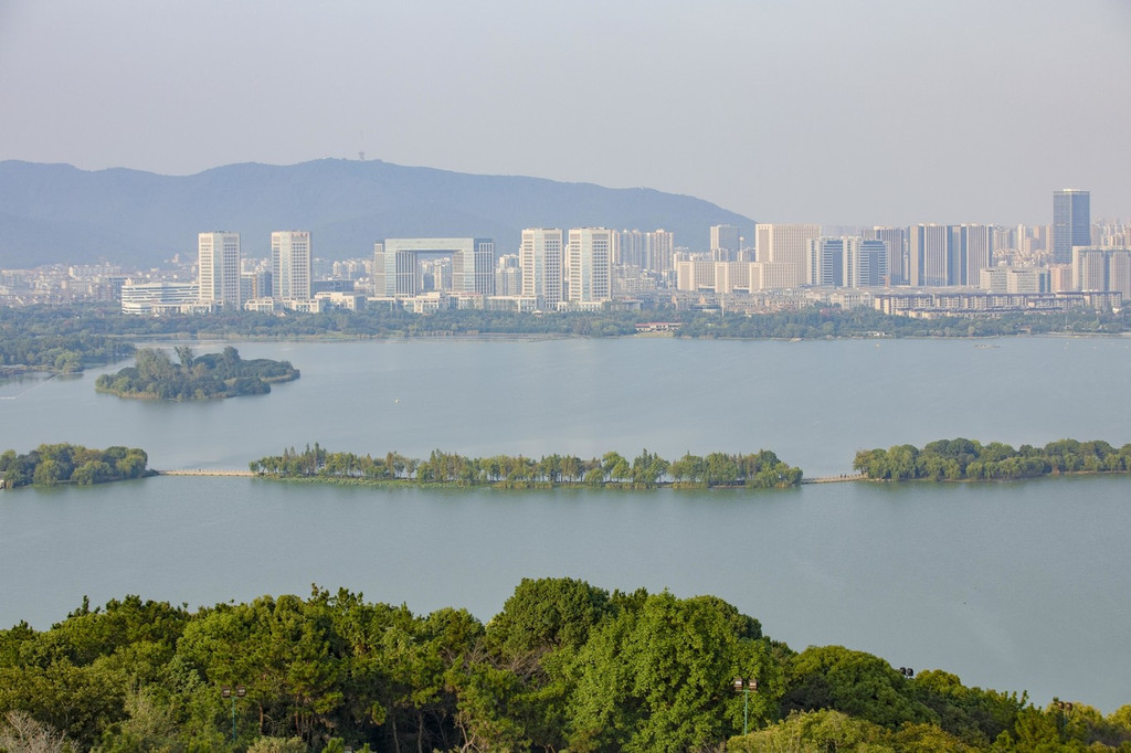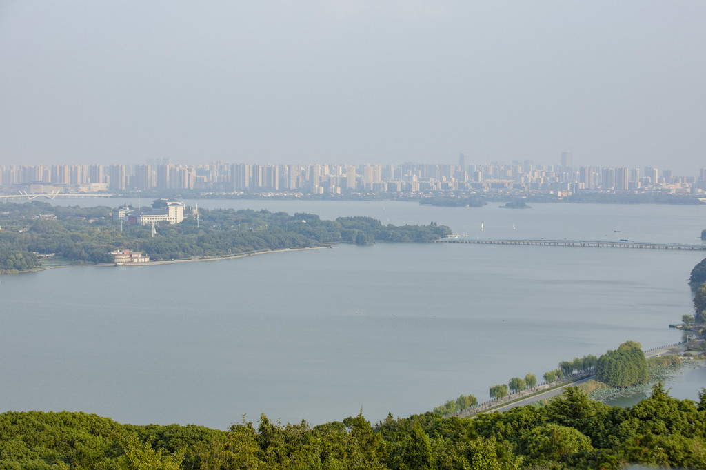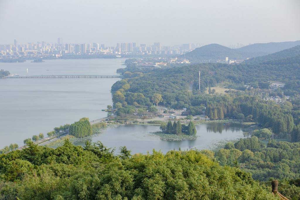 拾级而上,顿时豁然开朗,这里可以看到 太湖 秀美的风光,也可以看到 无锡 这座依湖而建的高楼大厦,这座城市与这片湖水仿佛融为一体。